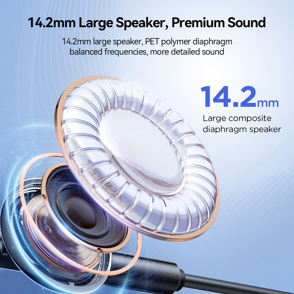 Det komfortable half in-ear design sidder let i øret og gør dem ideelle til lang tids brug. Med indbygget mikrofon og kontrolknapper kan du nemt styre musik og opkald direkte fra kablet. Det fleksible og slidstærke kabel er modstandsdygtigt over for sammenfiltring.