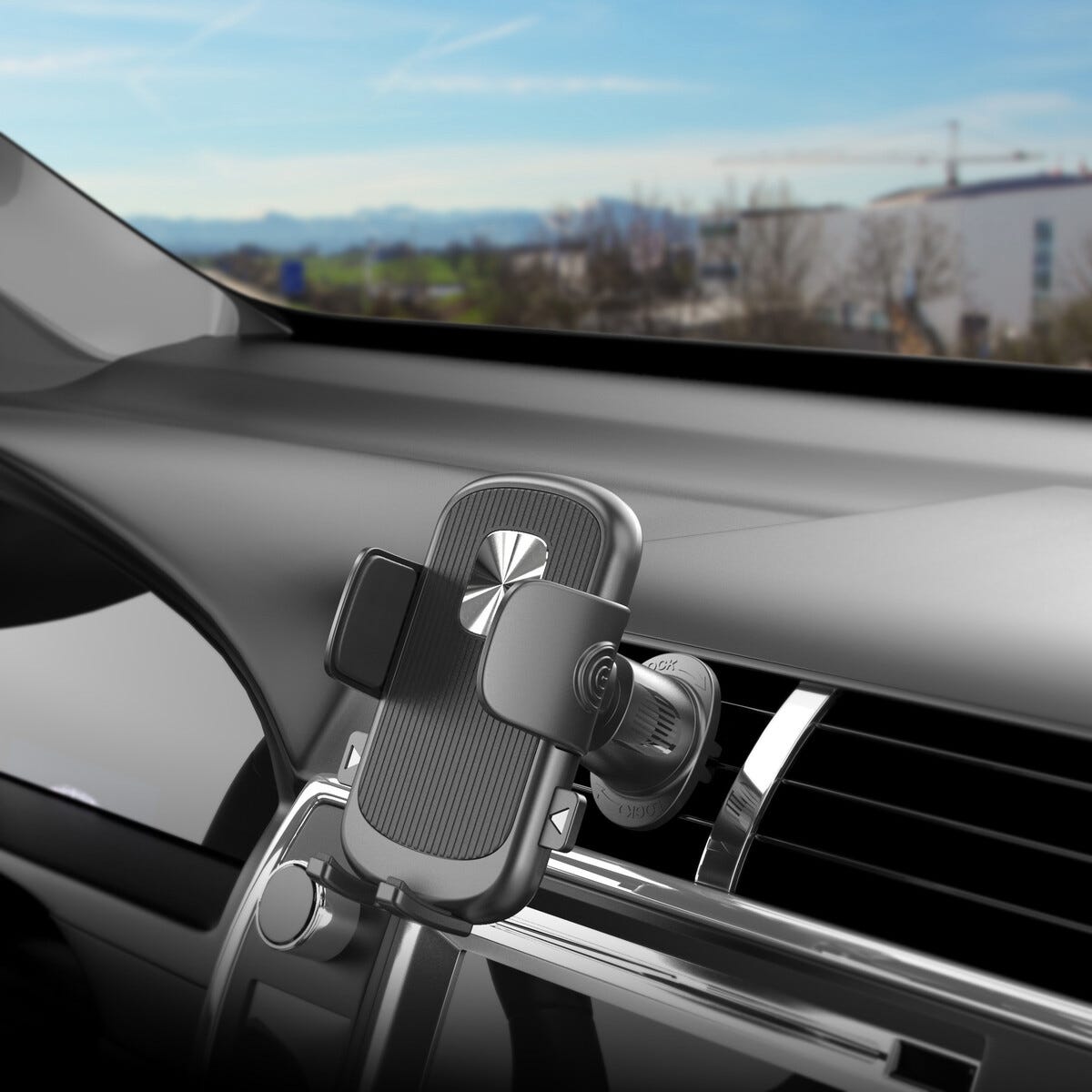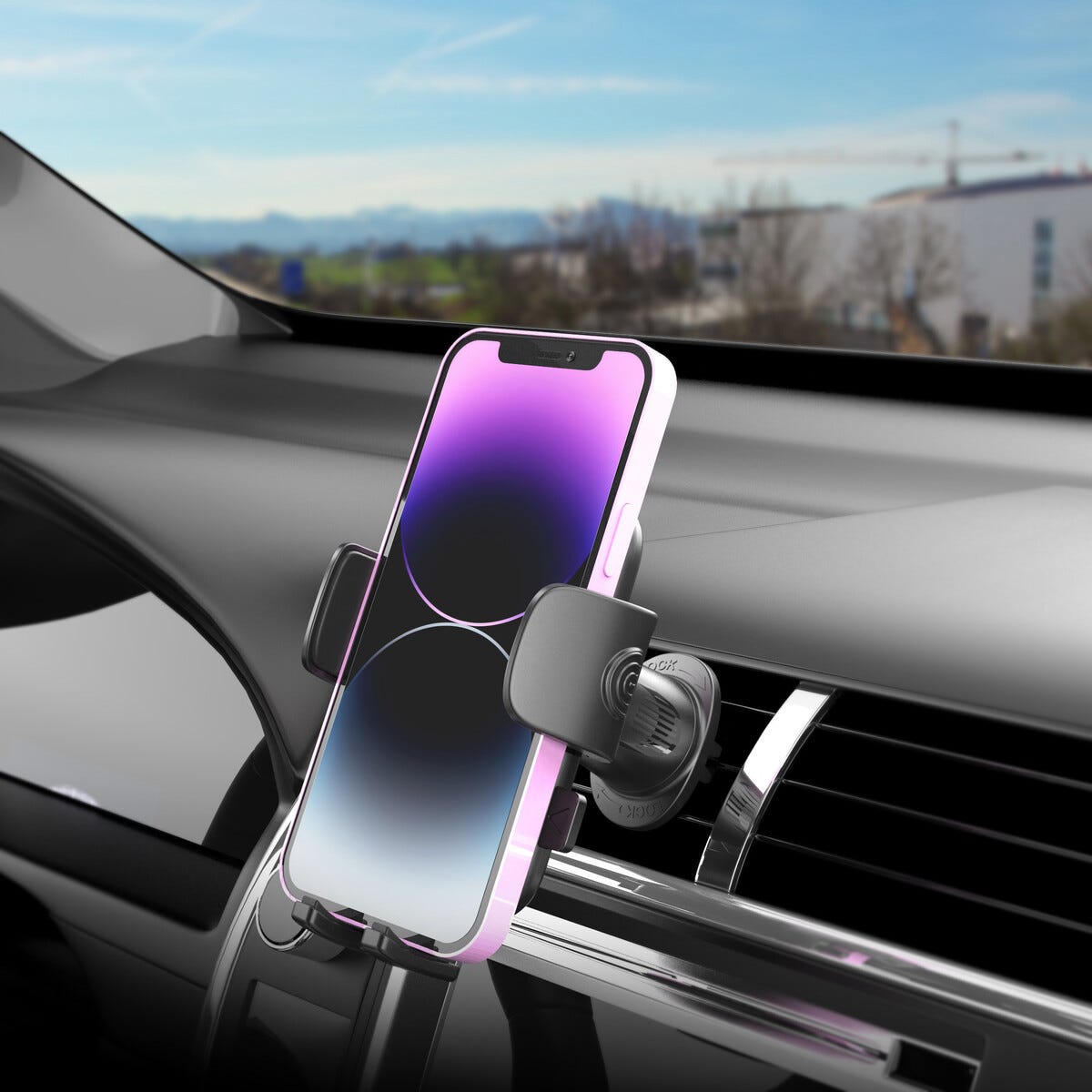 Den fleksible udformning gør at holderen passer til de fleste smartphones og nemt kan justeres efter din bil. Drej mobilen 360 grader for den bedste visningsvinkel og lad twist-to-lock-beslaget give et sikkert greb i ventilationen. En lille men smart opgradering der giver bedre komfort, stilren følelse og mere kontrol bag rattet.