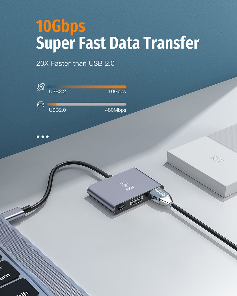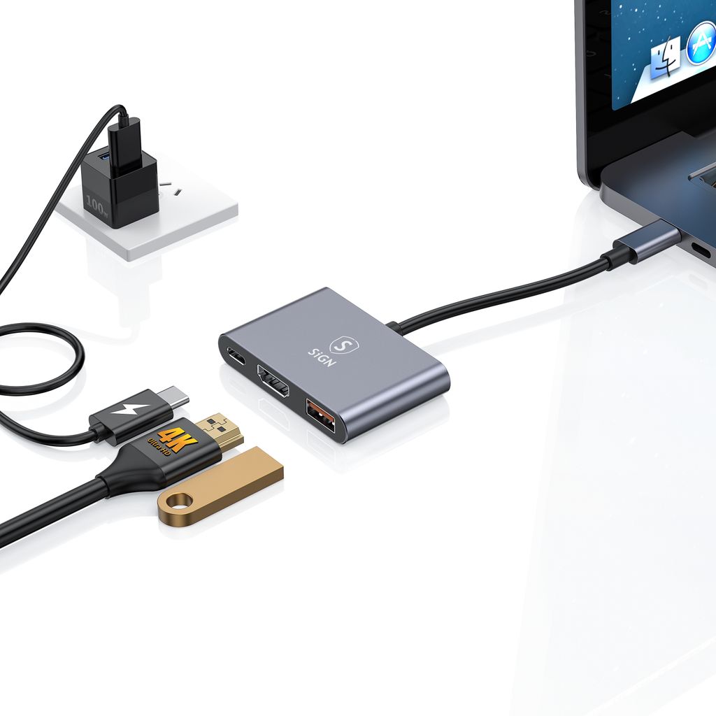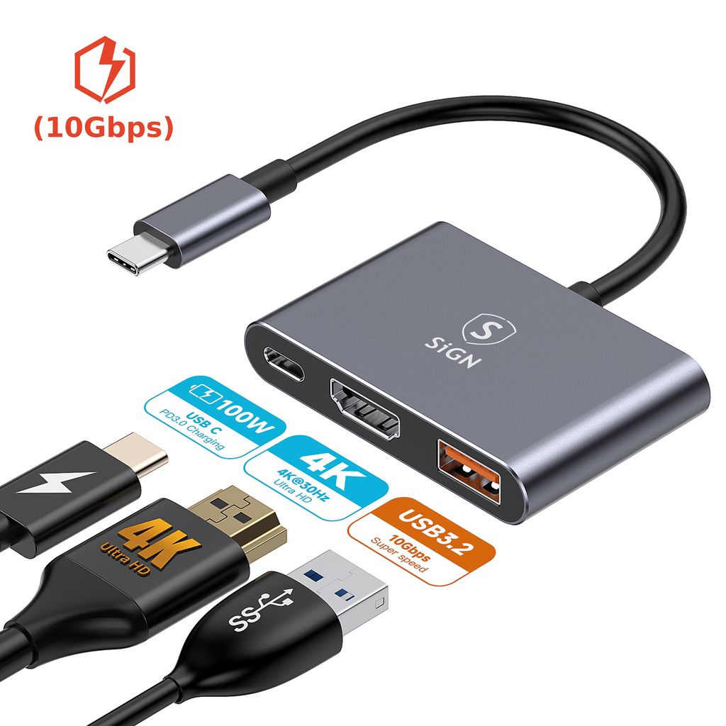 Mangler du flere porte uden at rode med flere adaptere? SiGN USB-C hub er en smart og kompakt løsning som gør det muligt at tilslutte skærm, tilbehør og opladning samtidig via én forbindelse. Perfekt når du arbejder, studerer eller vil streame film på en større skærm. HDMI-porten understøtter op til 4K opløsning ved 30 Hz og giver et klart og stabilt billede, mens USB-A-porten sikrer hurtig dataoverførsel op til 10 Gbps så filer nemt kan flyttes mellem enheder. Hubben har også USB-C-port med støtte for Power Delivery op til 100W så du kan oplade din bærbare computer samtidig med at du bruger de andre funktioner. Fremstillet i slidstærke materialer til daglig brug.