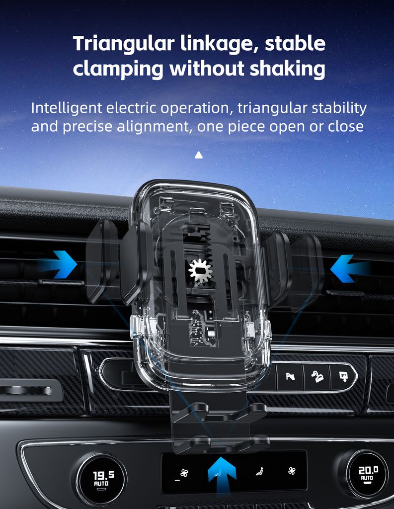 - Mobilholder til bil med trådløs Qi-opladning