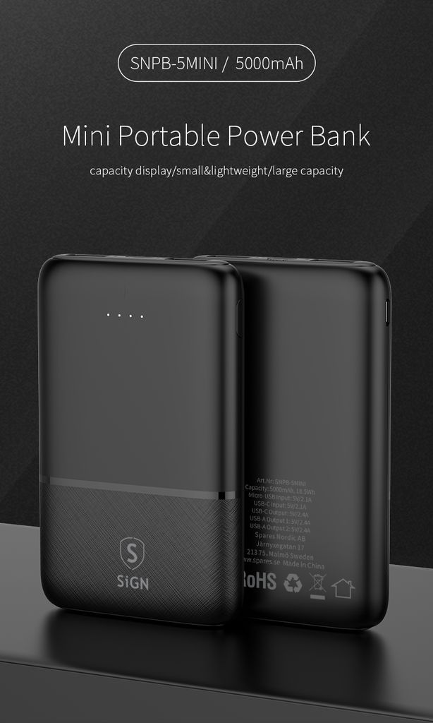 SiGN Mini Powerbank 5000mAh giver dig ekstra strøm, når du har mest brug for det. Den kompakte og tynde størrelse gør den nem at have med i lommen, tasken eller jakken, så du altid har strøm ved hånden. Med 5000mAh kapacitet kan du oplade din smartphone, når batteriet er lavt.