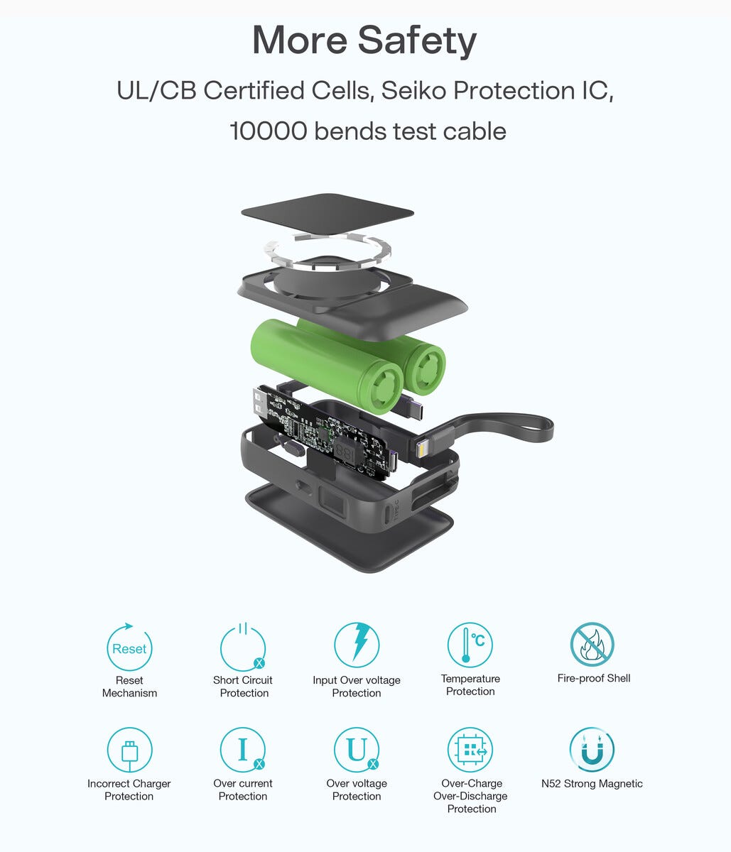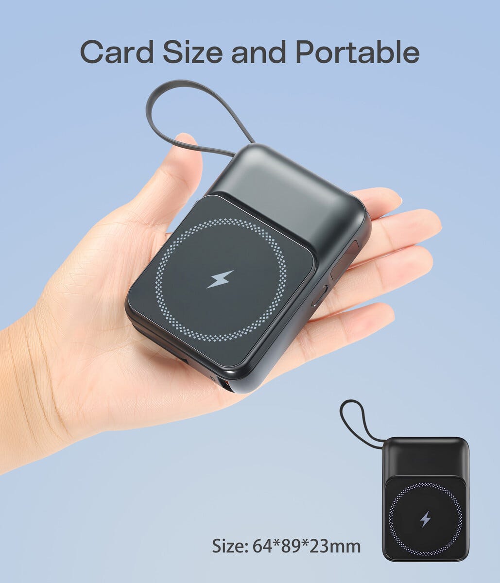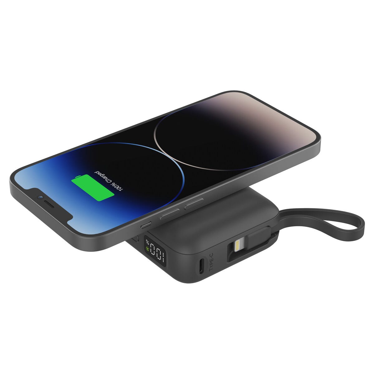 Sig hej til powerbanken der gør opladning legende let. Med stærk kapacitet på 10000 mAh og trådløs hurtigopladning op til 15 W får dine enheder hurtigt ny energi når batteriet begynder at falde. De integrerede USB-C- og Lightning-kabler betyder at du slipper ekstra ledninger og altid er klar til at oplade, uanset om du bruger iPhone eller Android. Det smarte design gør det muligt at oplade flere enheder samtidigt både trådløst og via portene. Perfekt i tasken på rejse, pendling eller travle dage hvor mobilen skal følge med. Displayet viser tydeligt batteristatus så du altid har overblik. En fleksibel opladningsmakker som kombinerer kraft, mobil frihed og praktisk funktion i hverdagen.