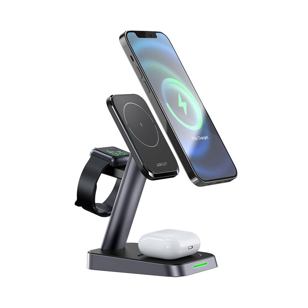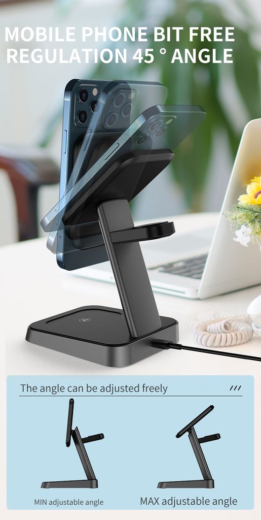 Oplad mobil, Apple Watch og AirPods samtidigt og spar både tid og plads. Med hurtig opladning op til 15W får du effektiv opladning, og du kan bruge mobilen både lodret og vandret under opladning. Indbyggede sikkerhedssystemer giver tryg opladning.