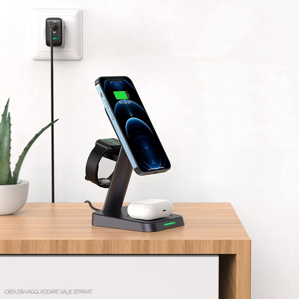 - 3-i-1 ladestation til mobil, Apple Watch og AirPods