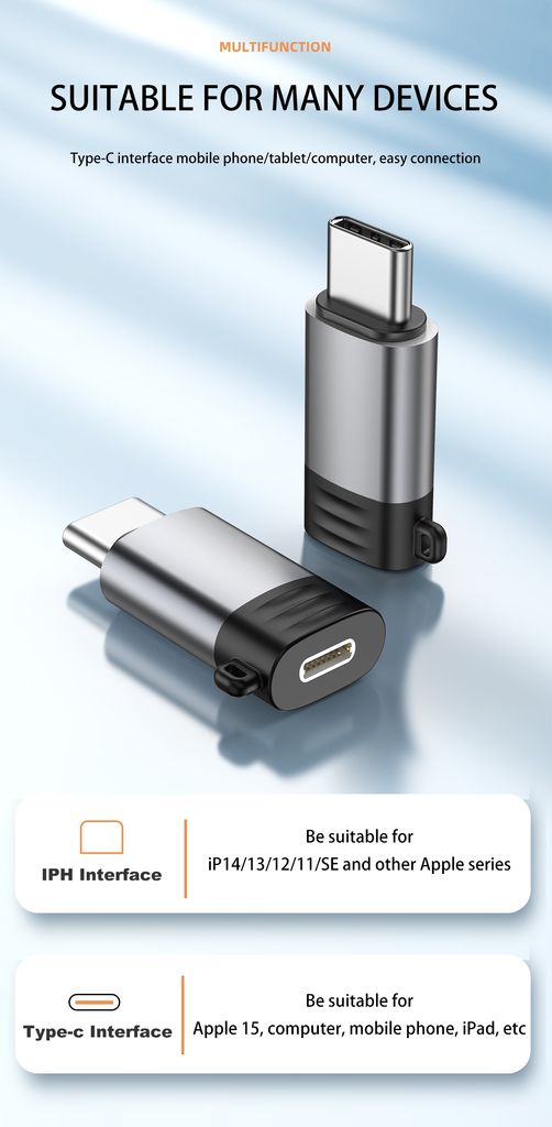 Med NEXTBATT Lightning til USB-C adapter kan du bruge din Lightning-kabel i en USB-C port. Perfekt når du vil oplade eller overføre data til enheder med USB-C uden at skifte kabel. Sæt adapteren i porten og tilslut Lightning-kablet, så er du klar. Adapteren understøtter USB 2.0 som giver stabil dataoverførsel og pålidelig opladning i hverdagen. Den er fremstillet i slidstærkt TPE og aluminiumlegering som giver solid konstruktion og sikker forbindelse. Den kompakte størrelse gør adapteren nem at have med i lommen eller tasken.