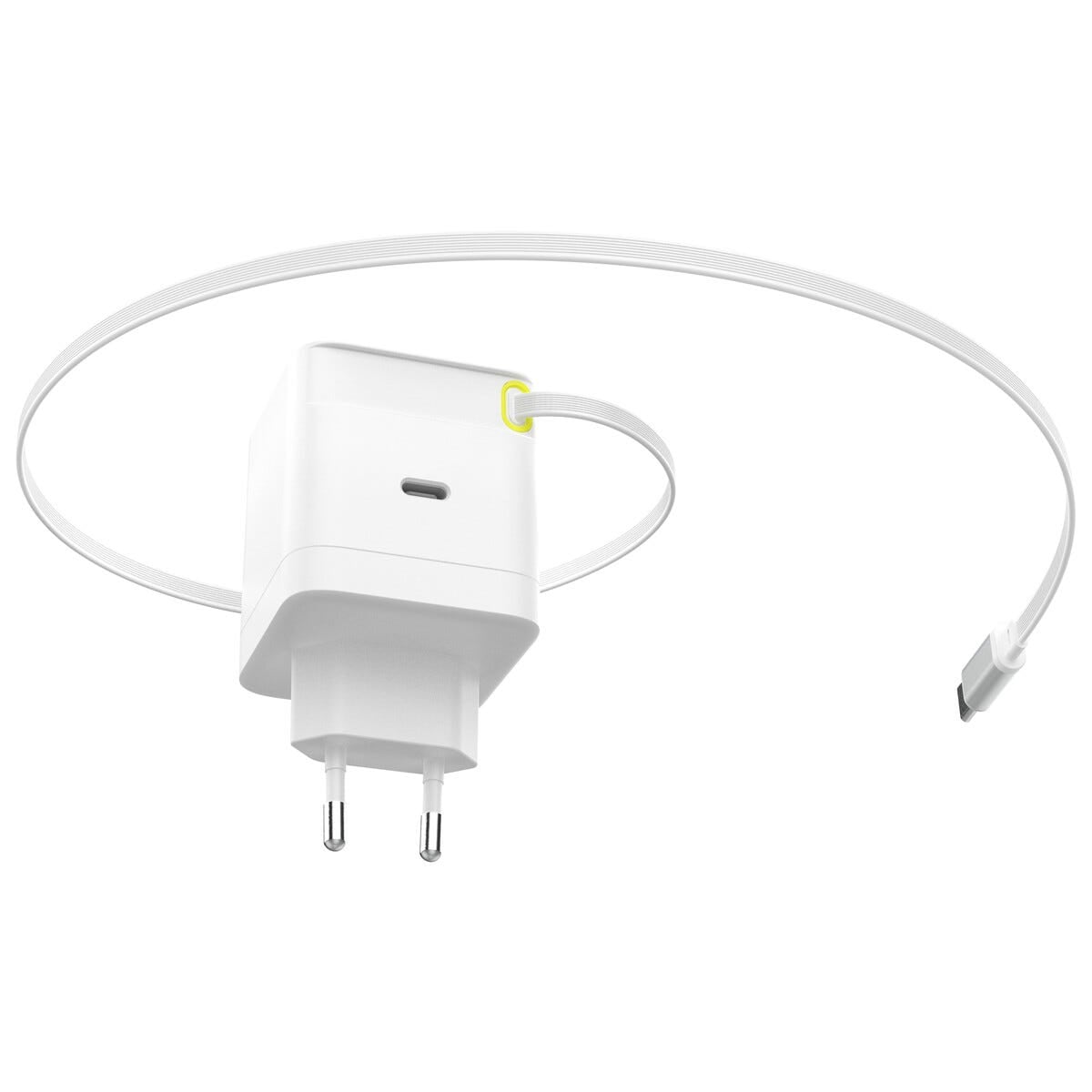 Se denne smarte 65 W hurtigoplader som gør opladningen lettere med det samme. Den integrerede og udtrækkelige USB-C-kabel betyder mindre kabelrod og gør det nemt altid at have strøm klar når batteriet begynder at blive lavt. Med kraftfuld GaN-teknologi får du hurtig opladning i et kompakt format der passer perfekt hjemme, på kontoret eller på farten. Med to USB-C-tilslutninger kan du oplade flere enheder samtidigt og holde mobilen, tabletten eller laptopen klar til næste øjeblik (1 ekstra kabel kræves, sælges separat). En lille men smart oplader der giver hurtig energi og en mere smidig hverdag.