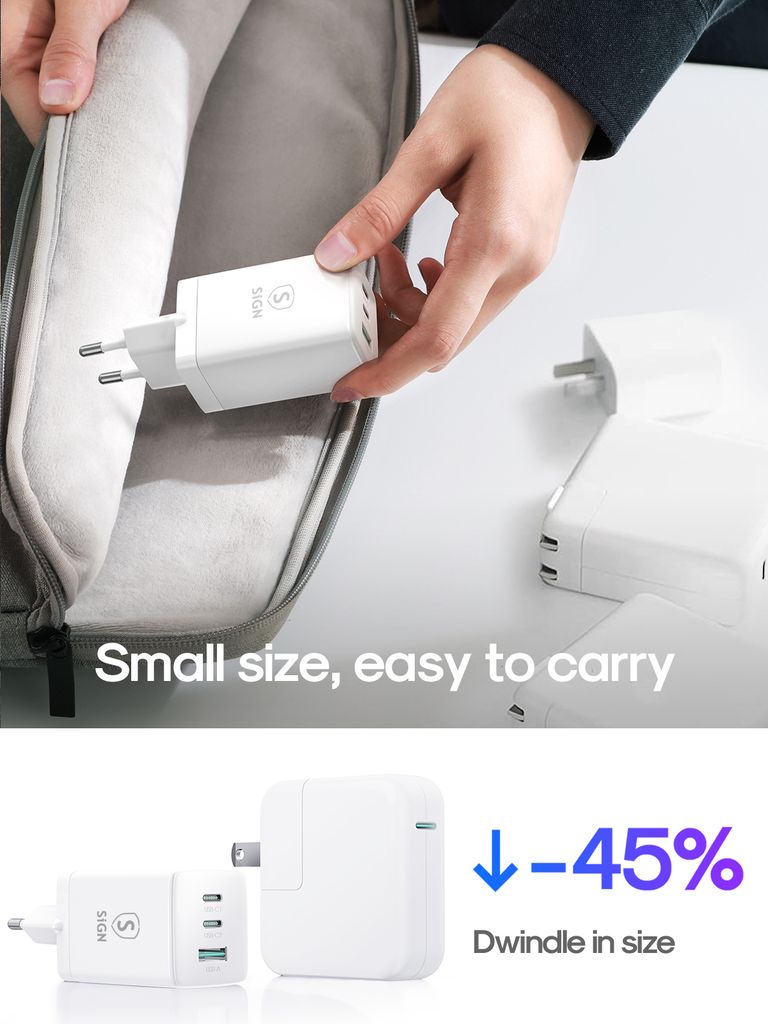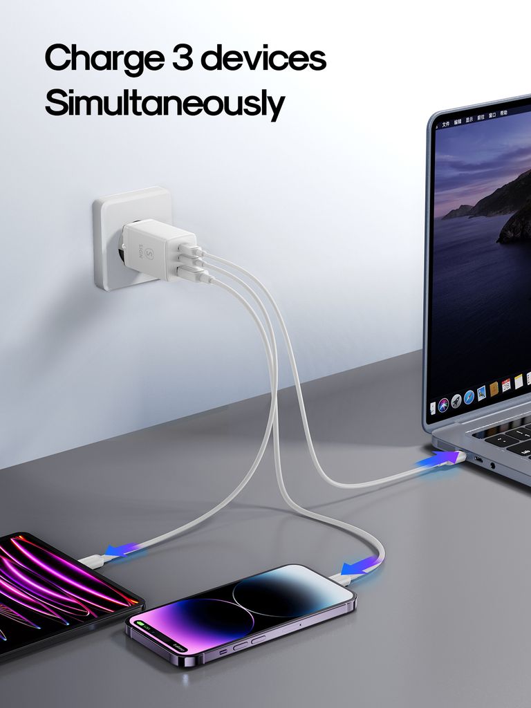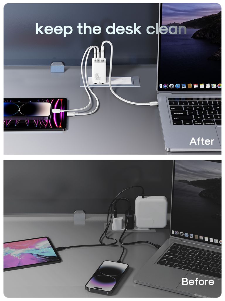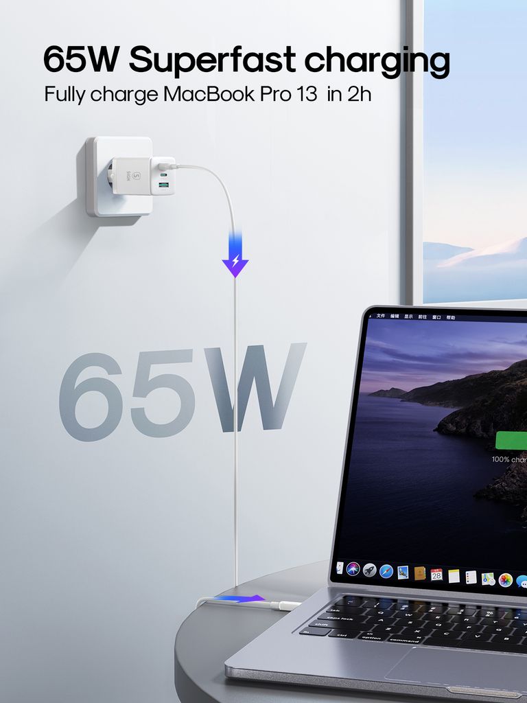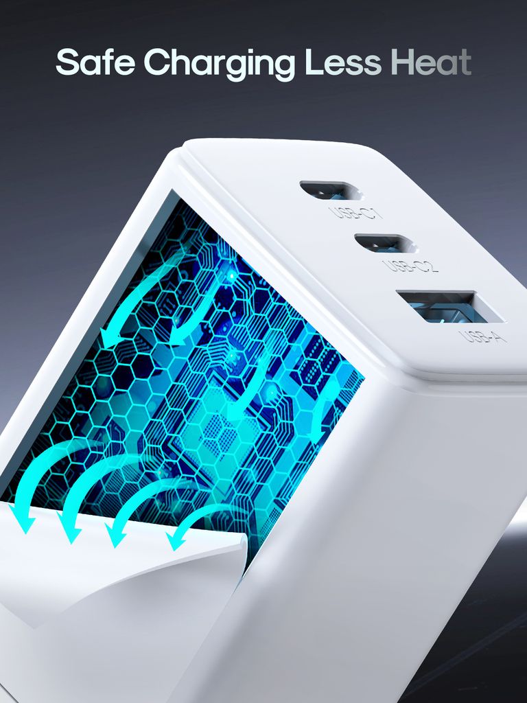 GaN-teknologien gør opladeren både effektiv og kølig under brug. Perfekt til skrivebordet, hjemmet eller rejsen når du vil have hurtig og stabil opladning hver dag.