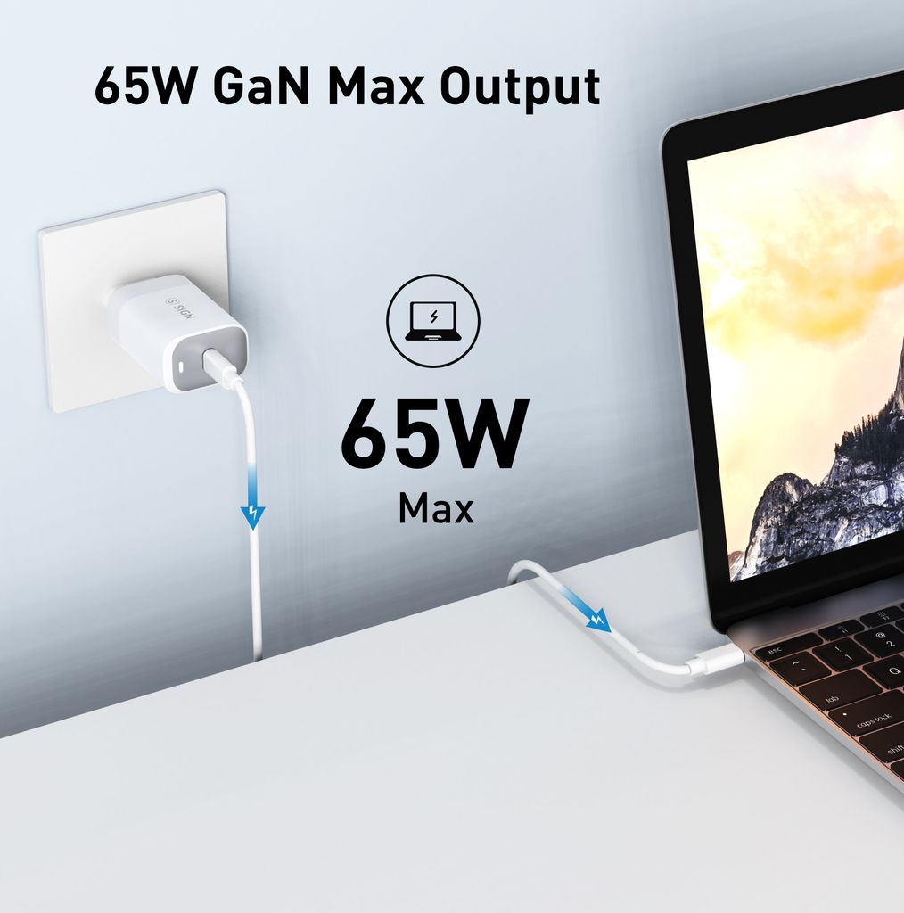 Kraft der kan mærkes! SiGN 65W oplader med USB-C PD er klar til at give dine enheder et seriøst energiboost. Med op til 65W udgangseffekt via USB-C får du hurtig og stabil opladning af bærbar computer, mobil og tablet uden besvær. Perfekt når batteriet blinker rødt og du vil hurtigt videre. Med støtte for Power Delivery og Qualcomm QuickCharge 3.0 oplades kompatible enheder effektivt og hurtigt. Op til 50 procent batteri på cirka 30 minutter for enheder med hurtigopladning betyder mindre ventetid. En kraftfuld og praktisk oplader, der passer lige godt hjemme, på kontoret eller i tasken på farten.