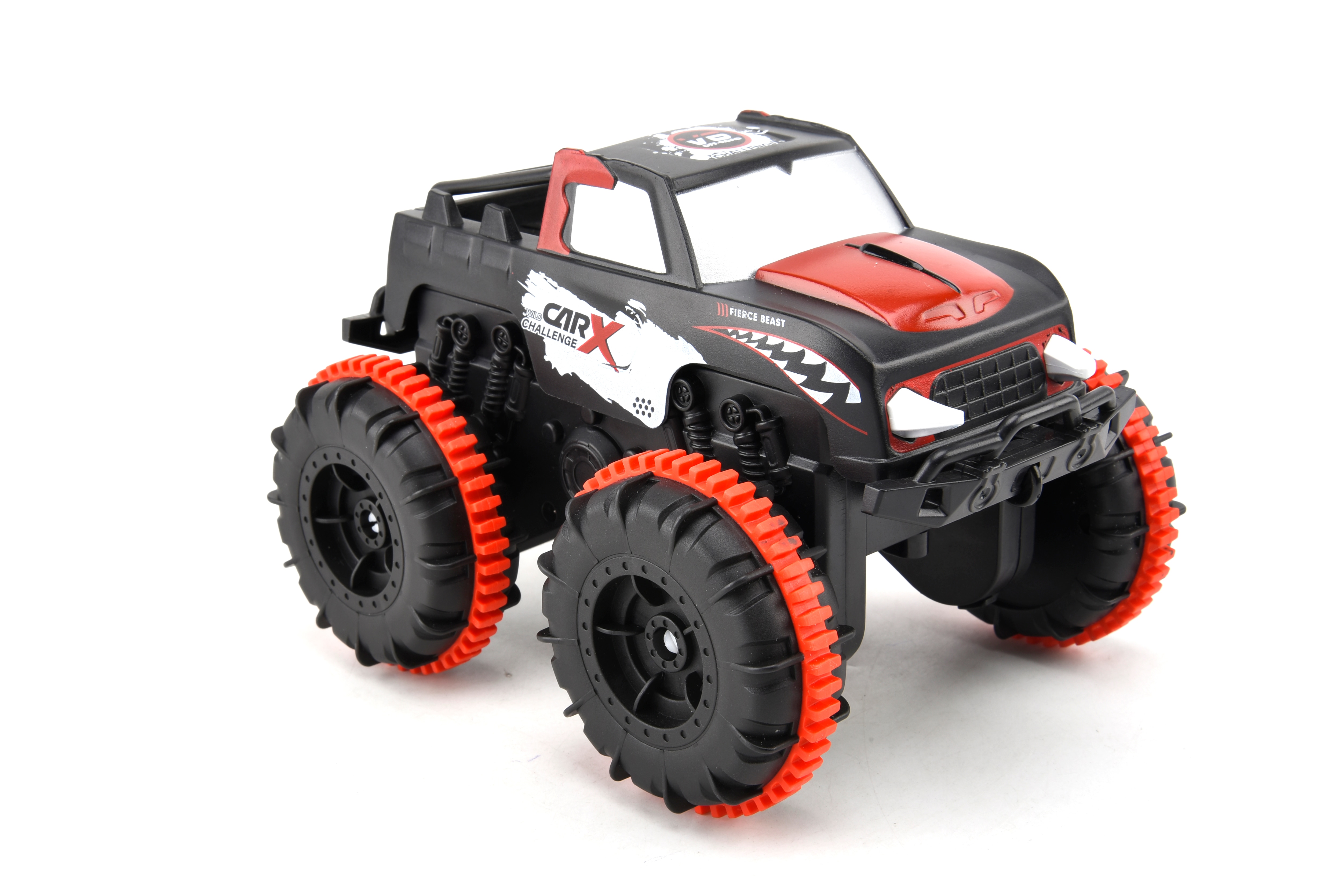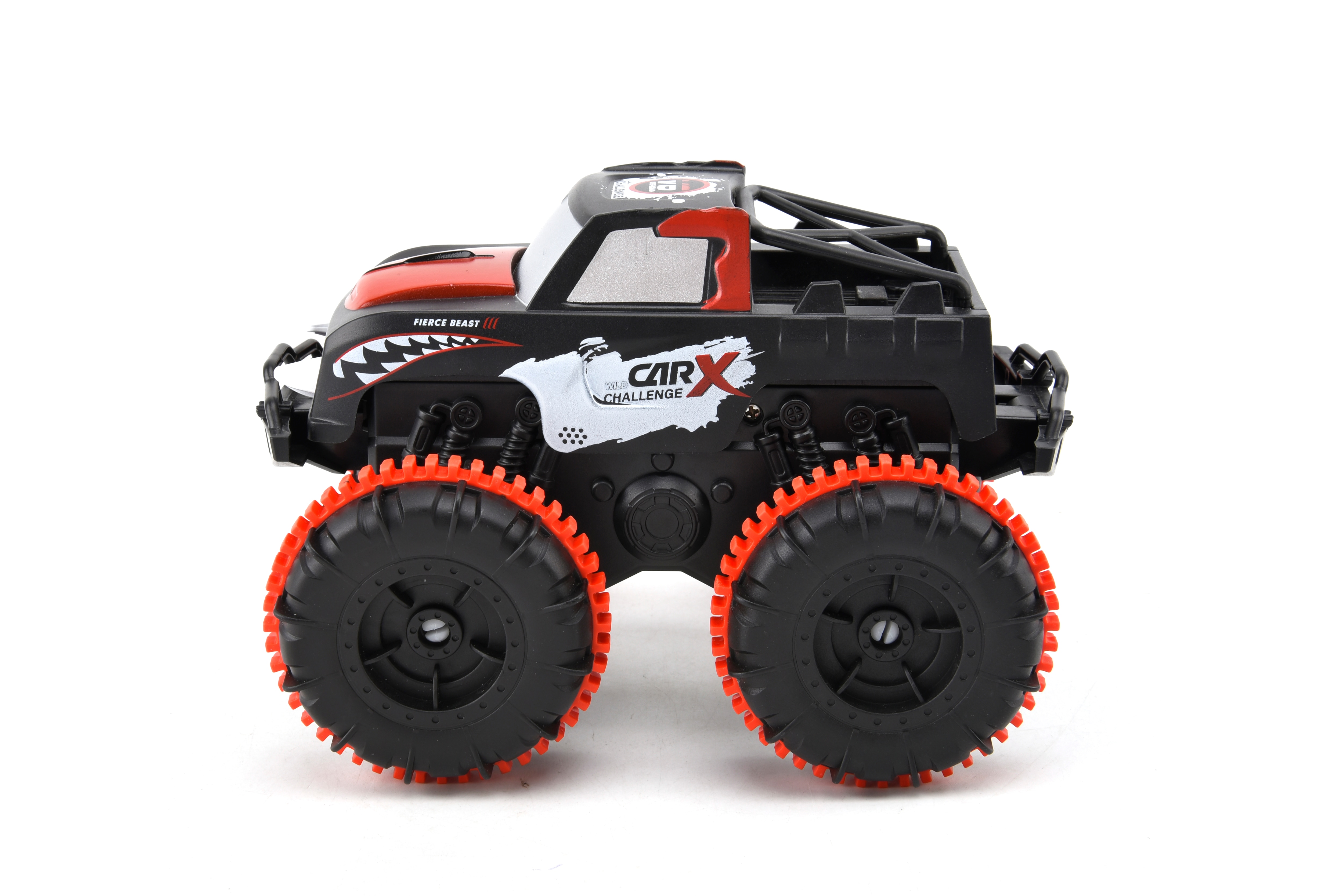 De grovmønstrede dæk giver godt greb og stabil fremdrift, selv på ujævnt underlag. Med 2,4 GHz-frekvens kan flere fjernstyrede biler køres samtidig uden forstyrrelser, hvilket gør den perfekt til race med venner. Bilen når hastigheder på op til ca. 6 km/t og er nem at styre, også for yngre kørere. Anbefalet alder er fra 6 år.