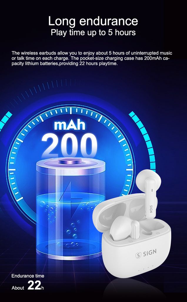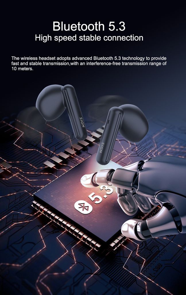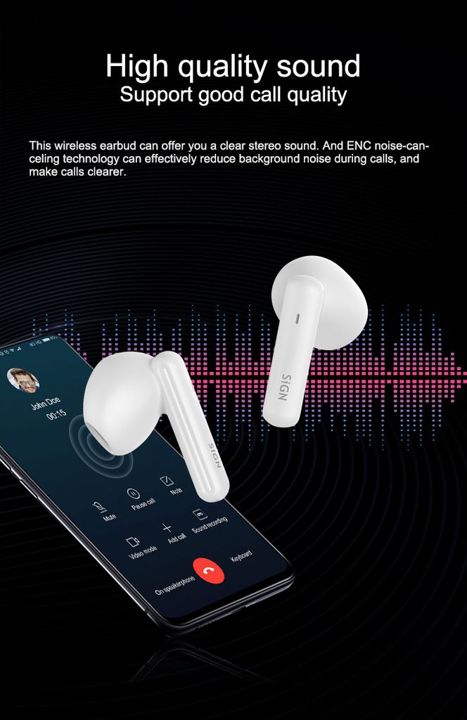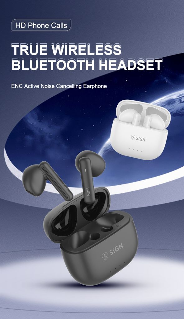 Nyd ægte trådløs frihed med SiGN Ultra Pods og få kraftfuld lyd uden kabler. Med Bluetooth 5.4 får du en hurtig og stabil forbindelse til iPhone, Samsung, Huawei og andre Android og iOS enheder, med op til 10 meters rækkevidde. Høretelefonerne understøtter SBC og AAC lydformater, som giver klar og balanceret lyd til musik og opkald. ENC støjreduktion hjælper med at reducere baggrundsstøj, så du kan fokusere på din lyd. De kraftige 10 mm højttalere leverer frekvensområde fra 20Hz til 20KHz. Med op til 5 timers batteritid og op til 22 timer med opladningsetuiet er de klar hele dagen. IPX4 beskyttelse gør dem modstandsdygtige over for sved og let regn.
