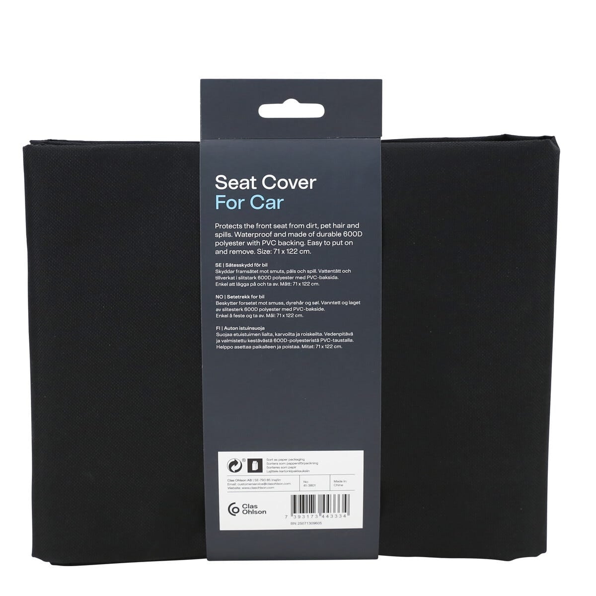 Clas Ohlson - Bilsædebeskytter til forsæde 71 x 122 cm, Sort
