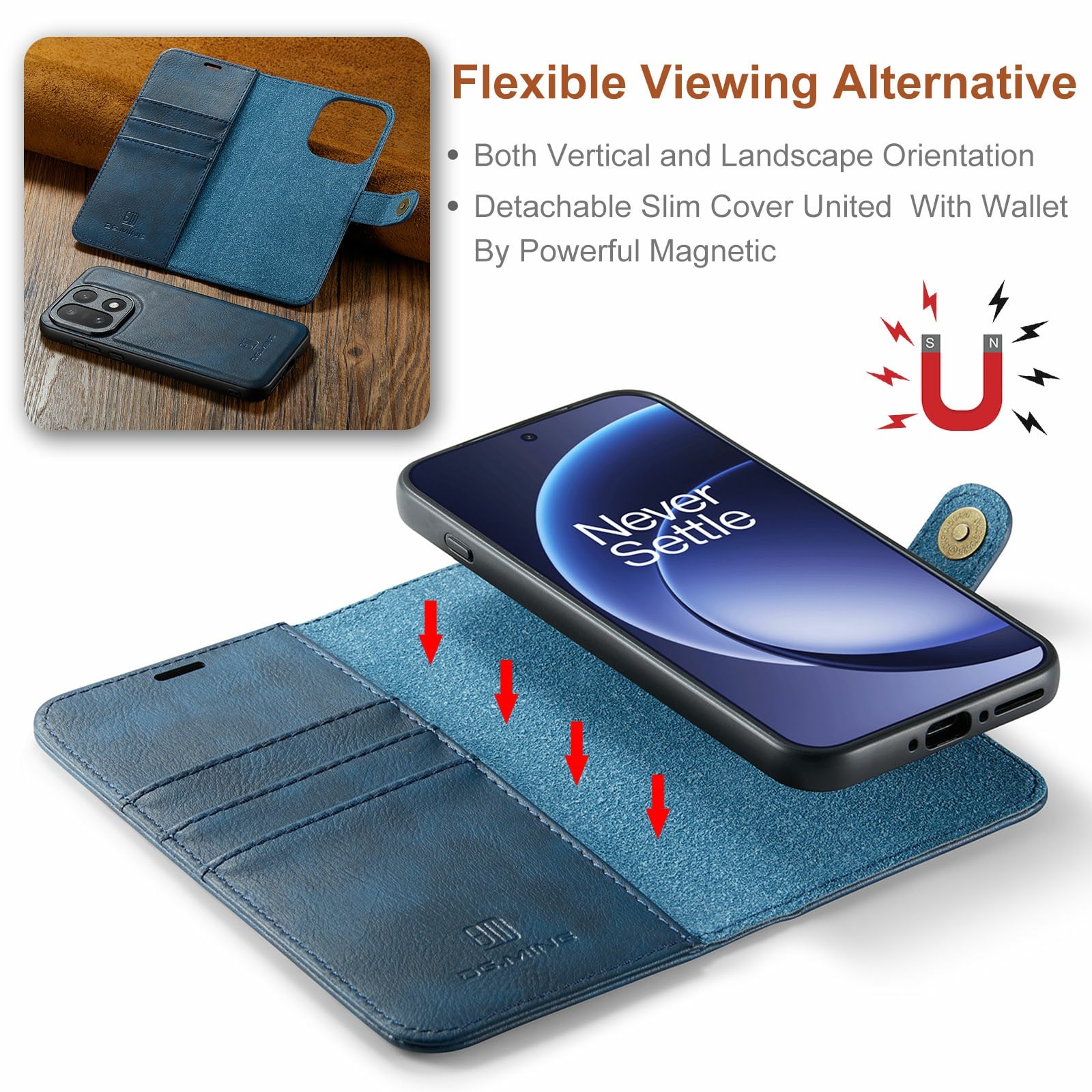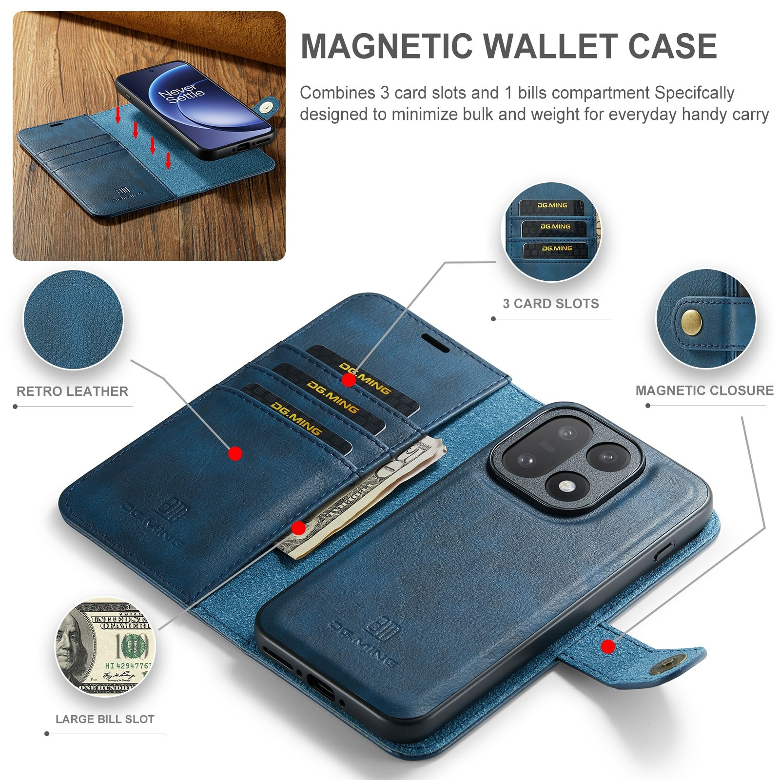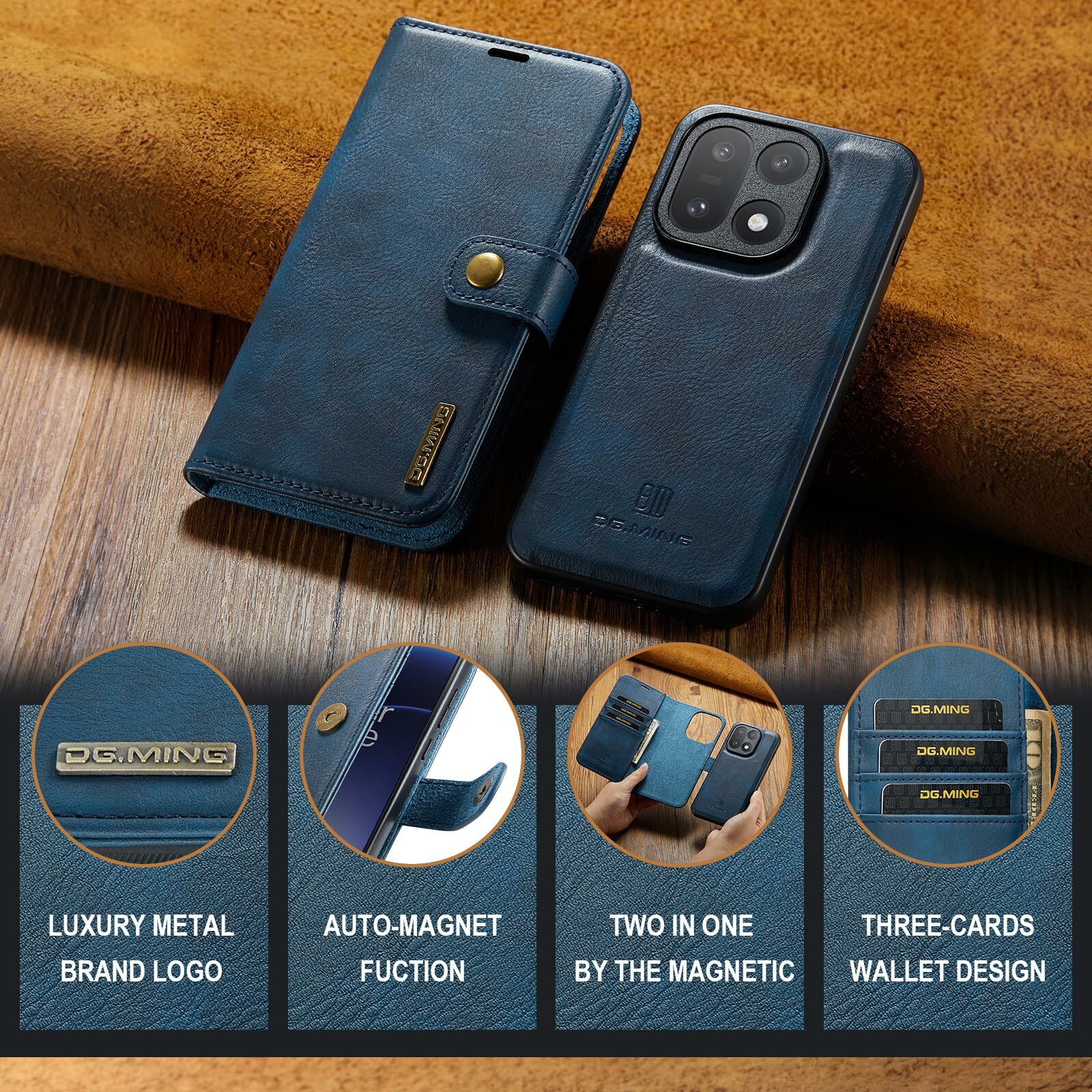 Tjek vores smarte etui med aftageligt magnetcover til OnePlus 15 fra DG.MING. Dette etui kombinerer klassisk stil med praktisk funktion – og med det aftagelige cover kan du nemt tage mobilen ud, når du er hjemme eller på arbejde, uden at skulle slæbe hele etuiet med.