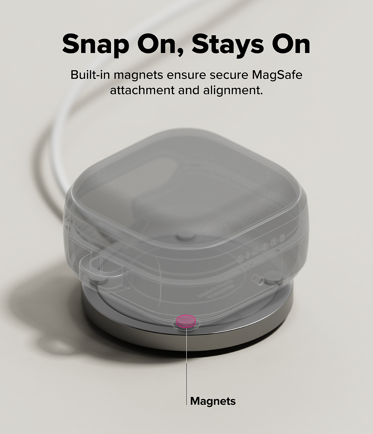Den praktiske karabinhage gør det nemt at fastgøre coveret hvor du vil - på tasken, nøgleringen eller måske bæltet? Og med MagSafe-understøttelse er det bare at klikke på til trådløs opladning - helt uden bøvl. Det gør bare livet lettere!
