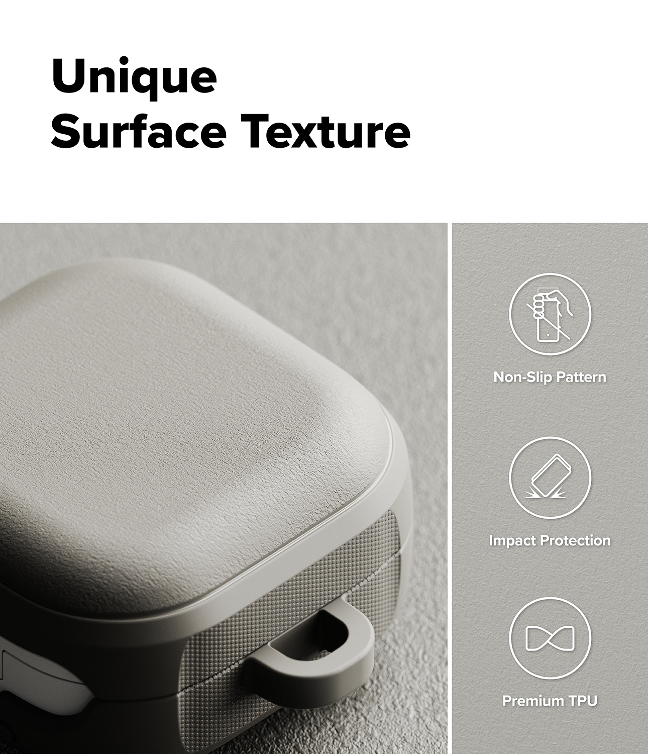Giv din Samsung Galaxy Buds 4 lidt ekstra stil med dette seje cover fra Ringke! Udstyret med MagSafe og en karabinhage er dette cover klar til at tage med på alle dine eventyr. Det har et cool design og beskytter din enhed som en ægte helt. Den fleksible og slidstærke TPU med mat, kornet overflade ligger godt i hånden og modstår både fingeraftryk og glatte uheld.
