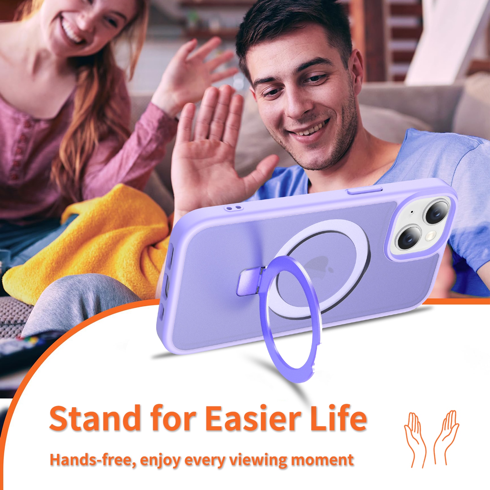 - Magnetringen kan foldes ud og bruges som praktisk mobilstativ