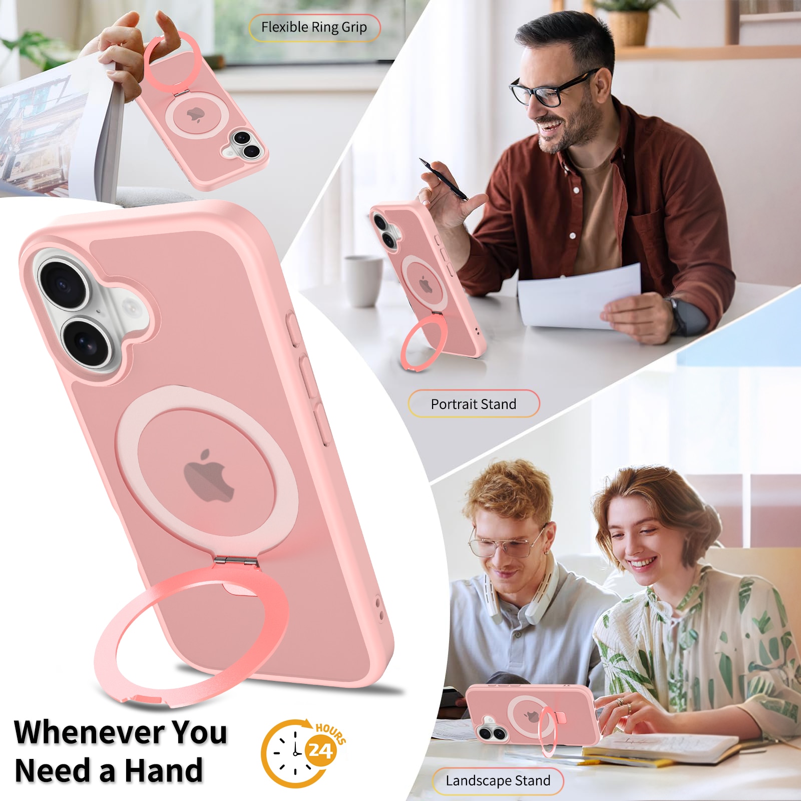 - Magnetringen kan foldes ud og bruges som praktisk mobilstativ