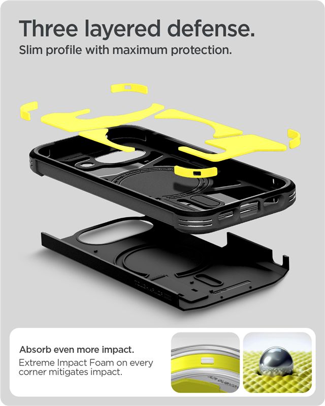 Med fuld MagSafe-understøttelse fungerer coveret perfekt med MagSafe-opladere og andet smart tilbehør – klik det blot på plads og kom videre. Indersiden består af fleksibel TPU med Spigens Air Cushion Technology i hjørnerne for ekstra beskyttelse, mens ydersiden er et hårdt polycarbonatcover, der giver et stabilt og sikkert greb.