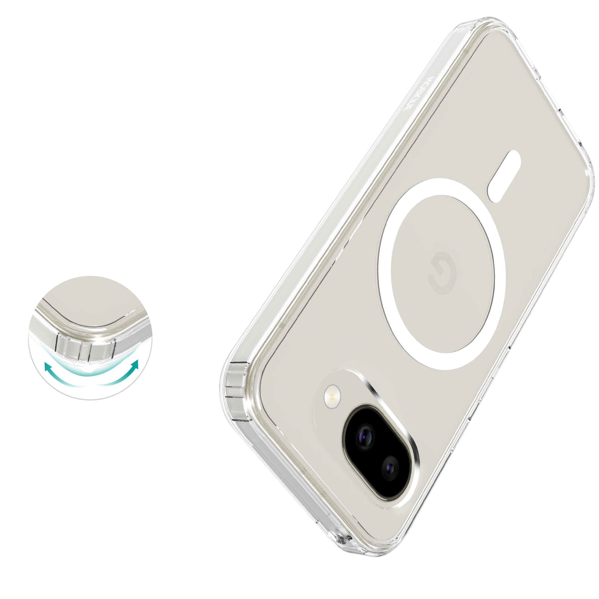 Se lige dette smarte og stilfulde hybridcover til Google Pixel 10a - komplet med en magnetisk ring for den ultimative kombination af design og funktionalitet! Coveret består af to lag: en fleksibel kerne i TPU omgivet af et solidt ydre i hård plast, som beskytter effektivt mod både stød og slag. Den magnetiske ring på bagsiden er klar til dine MagSafe-tilbehør - uanset om det er opladere eller kortholdere.