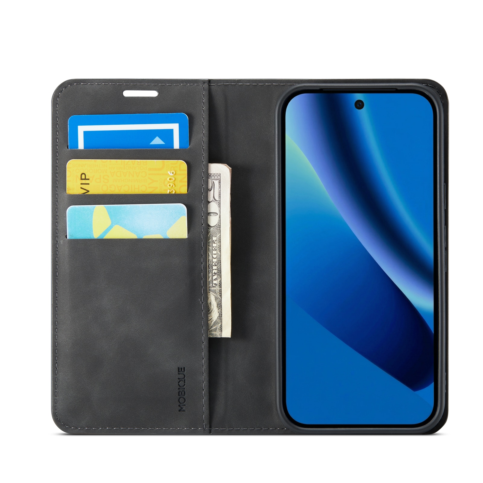 Gør din Google Pixel 10a både praktisk og elegant med dette flotte og slanke mobiletui. Med sit silkebløde ydre i slidstærkt kunstlæder og et stødabsorberende TPU-cover på indersiden er din mobil godt beskyttet mod både ridser og tab. Klappen beskytter skærmen, når etuiet er lukket, og har plads til to kort samt et ekstra rum til kvitteringer og sedler – så du nemt holder styr på dine vigtigste ting.