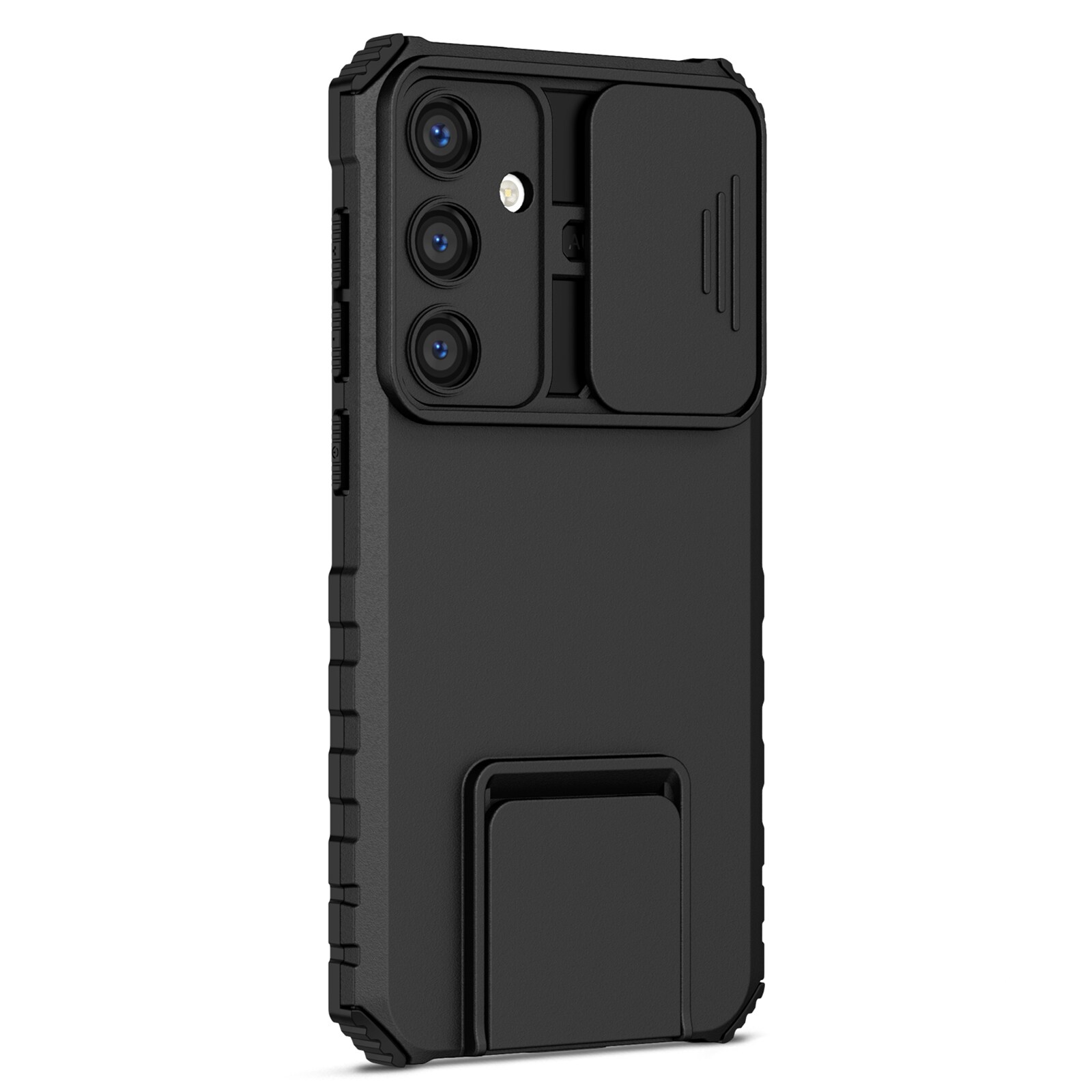 Ud over at tage imod stød som en mester, har det også en lille skydeklap, du kan trække hen over kameraet for at beskytte mod ridser, snavs og skader. Og det bedste? Et indbygget stativ, så du kan placere mobilen både lodret og vandret - perfekt til seriemaraton eller videosamtaler uden hænder.