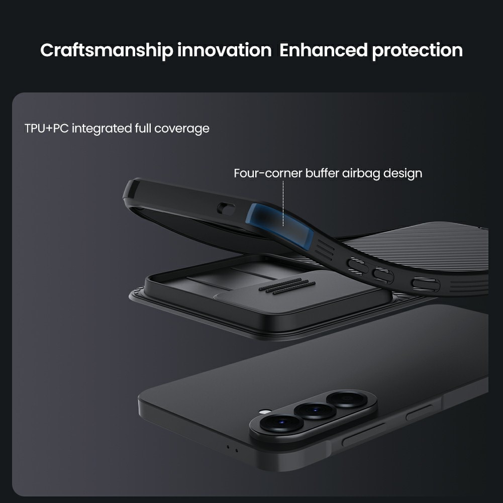 Giv din Samsung Galaxy A57 et cover, der både er smart og stilfuldt - Nillkin CamShield! Her får du ikke bare beskyttelse mod stød og slag, men også et indbygget kameradæksel, som du nemt skubber på plads, når du vil holde ridser og skader væk. Kameraet fortjener jo også lidt kærlighed!