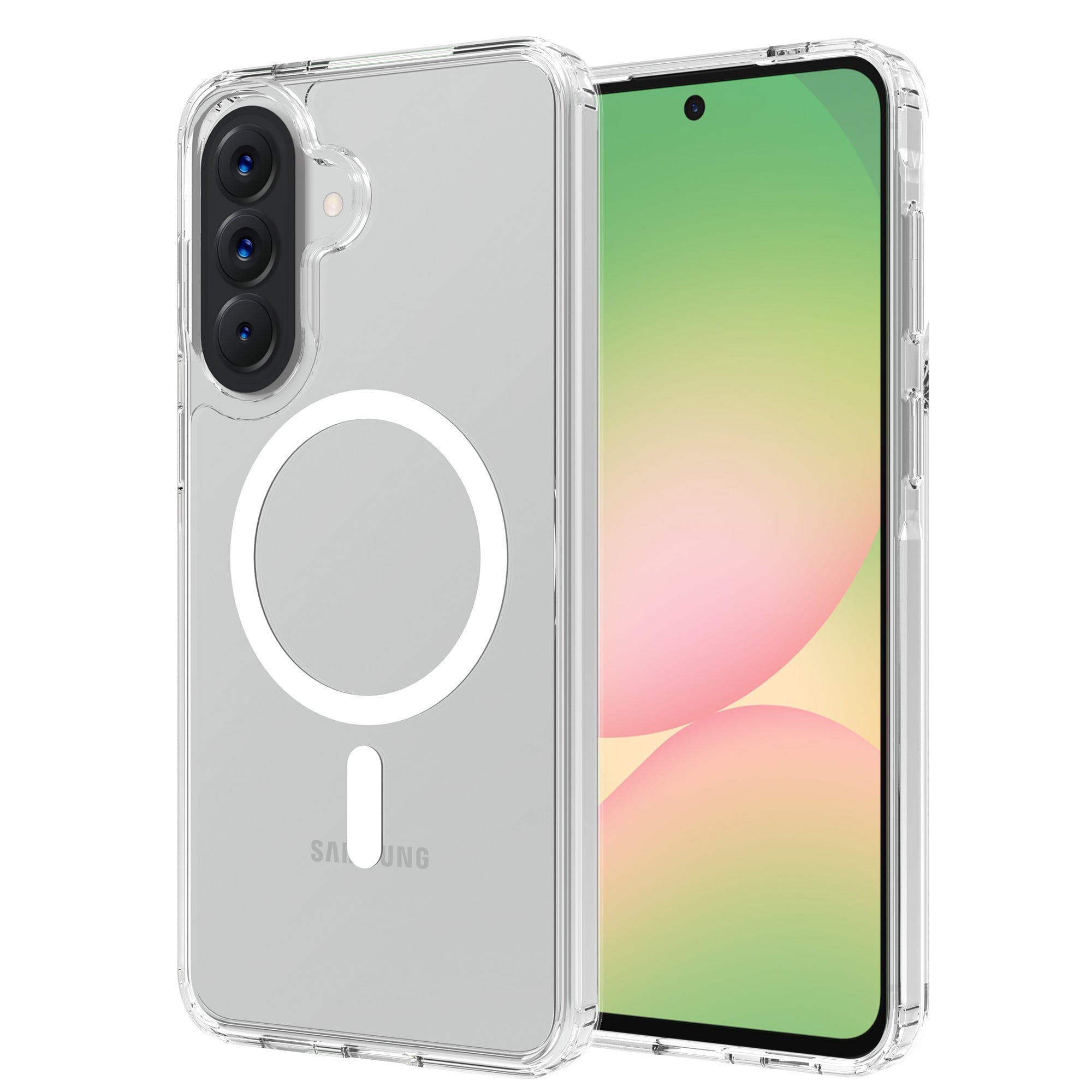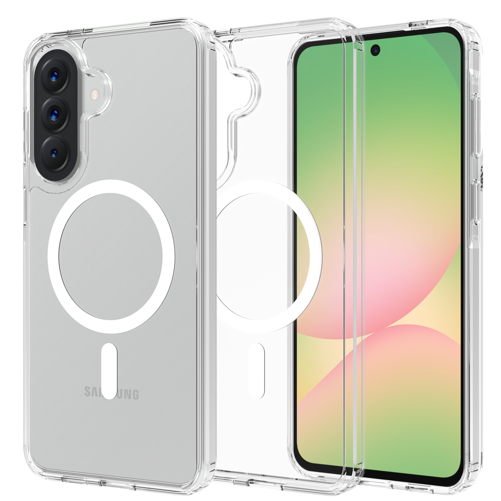 Se lige dette smarte og stilfulde hybridcover til Samsung Galaxy A57 - komplet med en magnetisk ring for den ultimative kombination af design og funktionalitet! Coveret består af to lag: en fleksibel kerne i TPU omgivet af et solidt ydre i hård plast, som beskytter effektivt mod både stød og slag. Den magnetiske ring på bagsiden er klar til dine MagSafe-tilbehør - uanset om det er opladere eller kortholdere.