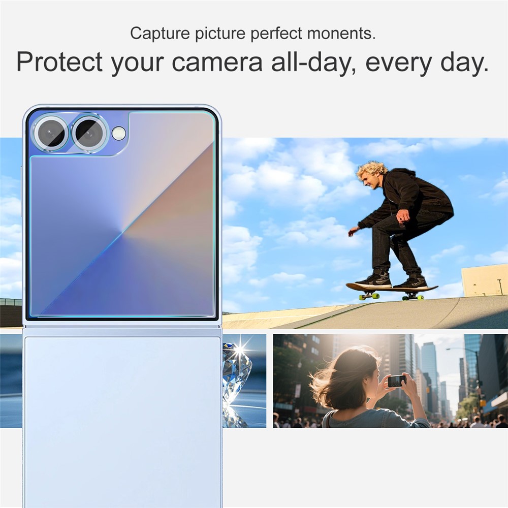 Pas godt på din Samsung Galaxy Z Flip 7 med dette superslanke beskyttelsessæt fra Imak! Vi taler om ultratynde 0,3 mm hærdet glas, der beskytter både kameralinsen og yderskærmen mod ridser og skader. Dine selfies og snapshots vil takke dig - de forbliver knivskarpe!