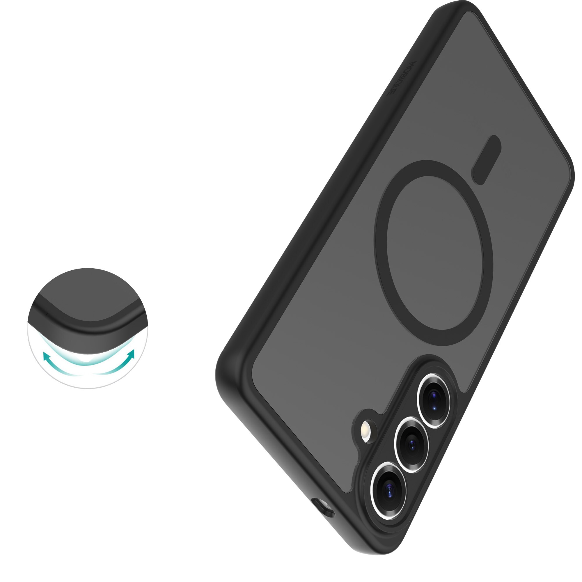 Giv din mobil et stilboost med dette hybride cover til Samsung Galaxy S26 Plus fra Mobique! Med sin elegante frostede finish og smarte magnetiske ring på bagsiden er det her ikke bare beskyttelse - det er en opgradering. Den magnetiske ring gør det supernemt at bruge MagSafe-tilbehør som opladere og kortholdere – det er ren hverdagsmagi!