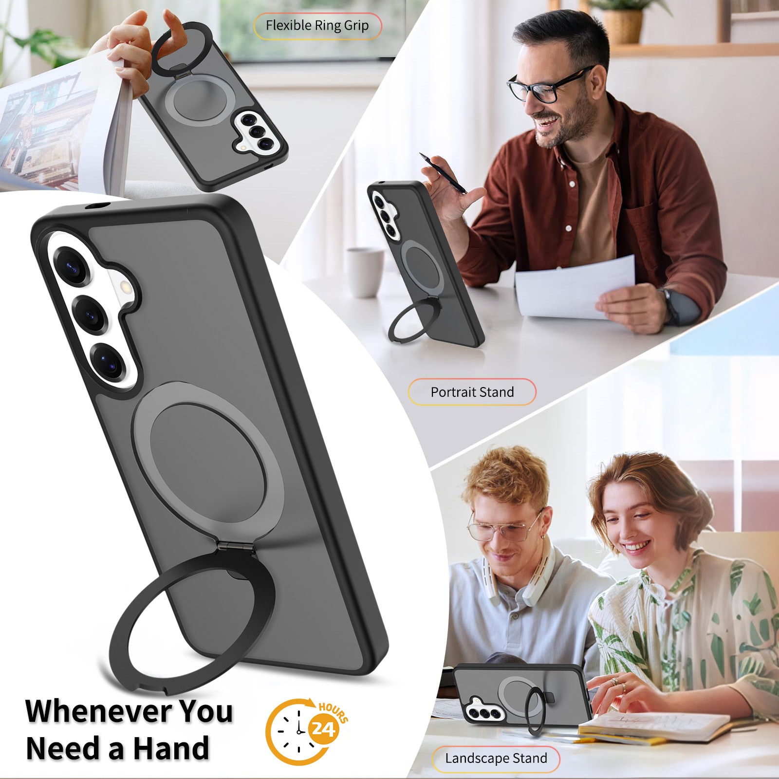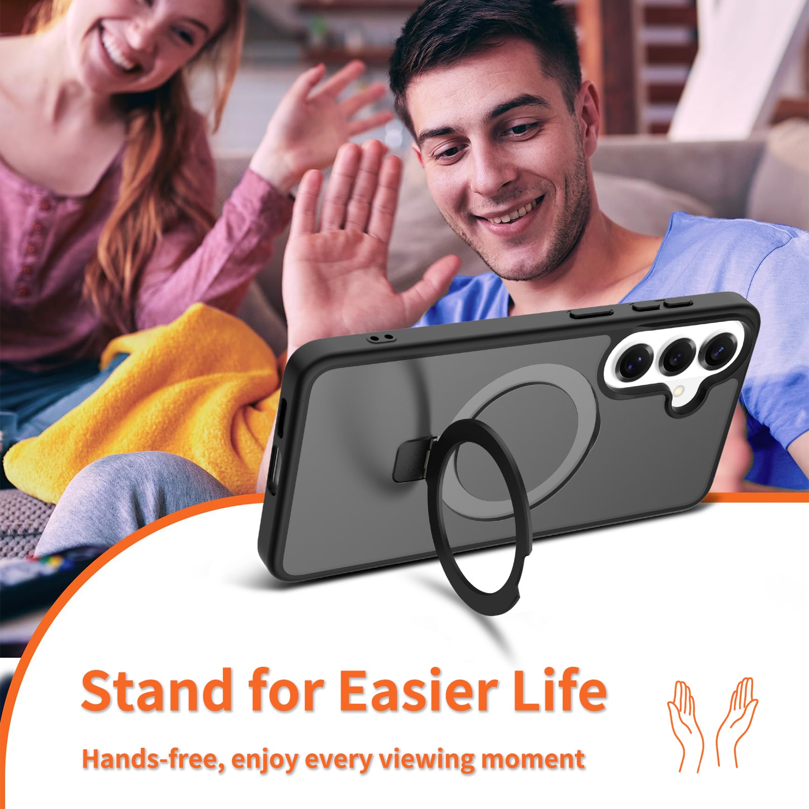 - Magnetringen kan foldes ud og bruges som praktisk mobilstativ