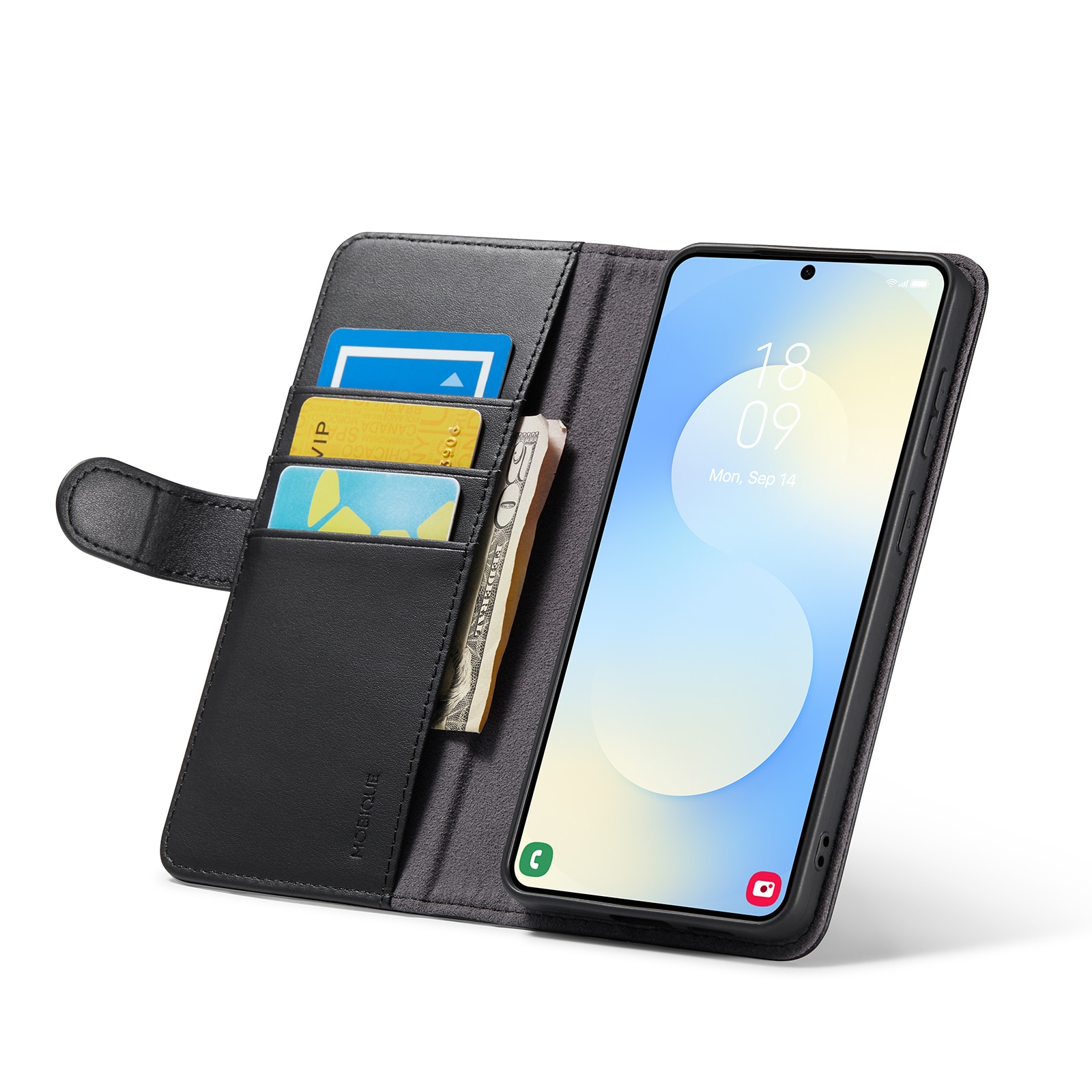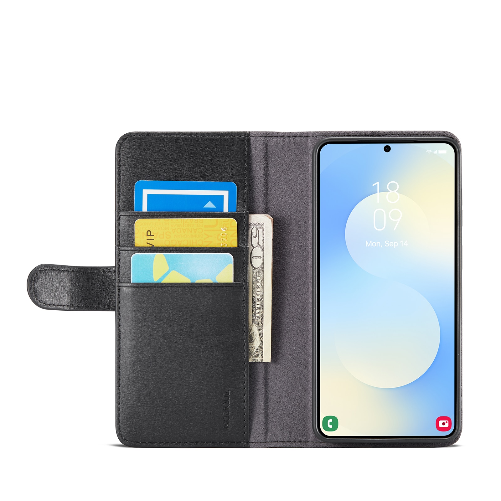 På udkig efter et lækkert læderetui til din Samsung Galaxy S26 Plus? Så tjek dette fra Mobique! Det er ikke bare flot - det er også superpraktisk. Etuiet dækker hele mobilen, og indeni frontklappen finder du en rummelig pung. Der er plads til flere kort og lidt kontanter - perfekt, når du ikke gider slæbe rundt på en separat pung.