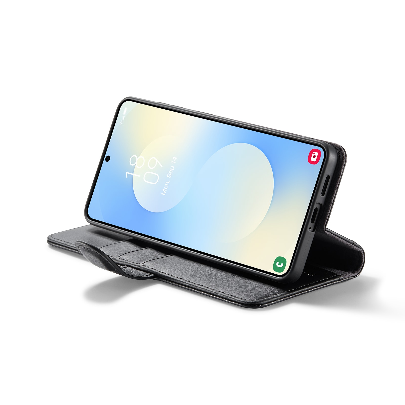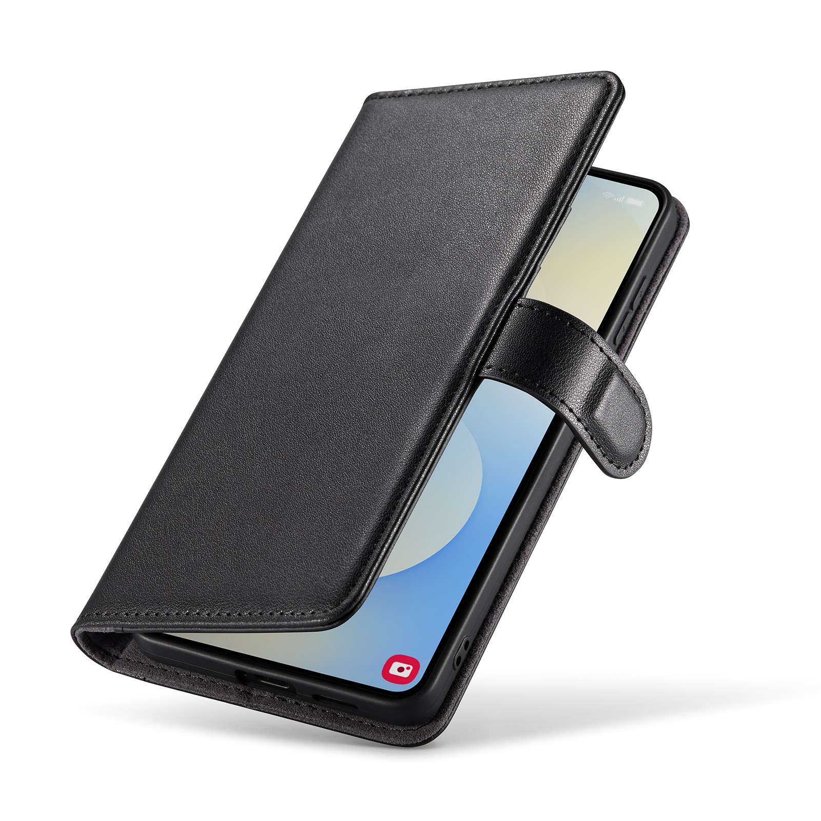Din mobil sidder som støbt i det indbyggede, stødabsorberende TPU-cover. Klappen lukkes med en smart magnetlukning og beskytter både for- og bagside. Farvel til knuste skærme og ridser!