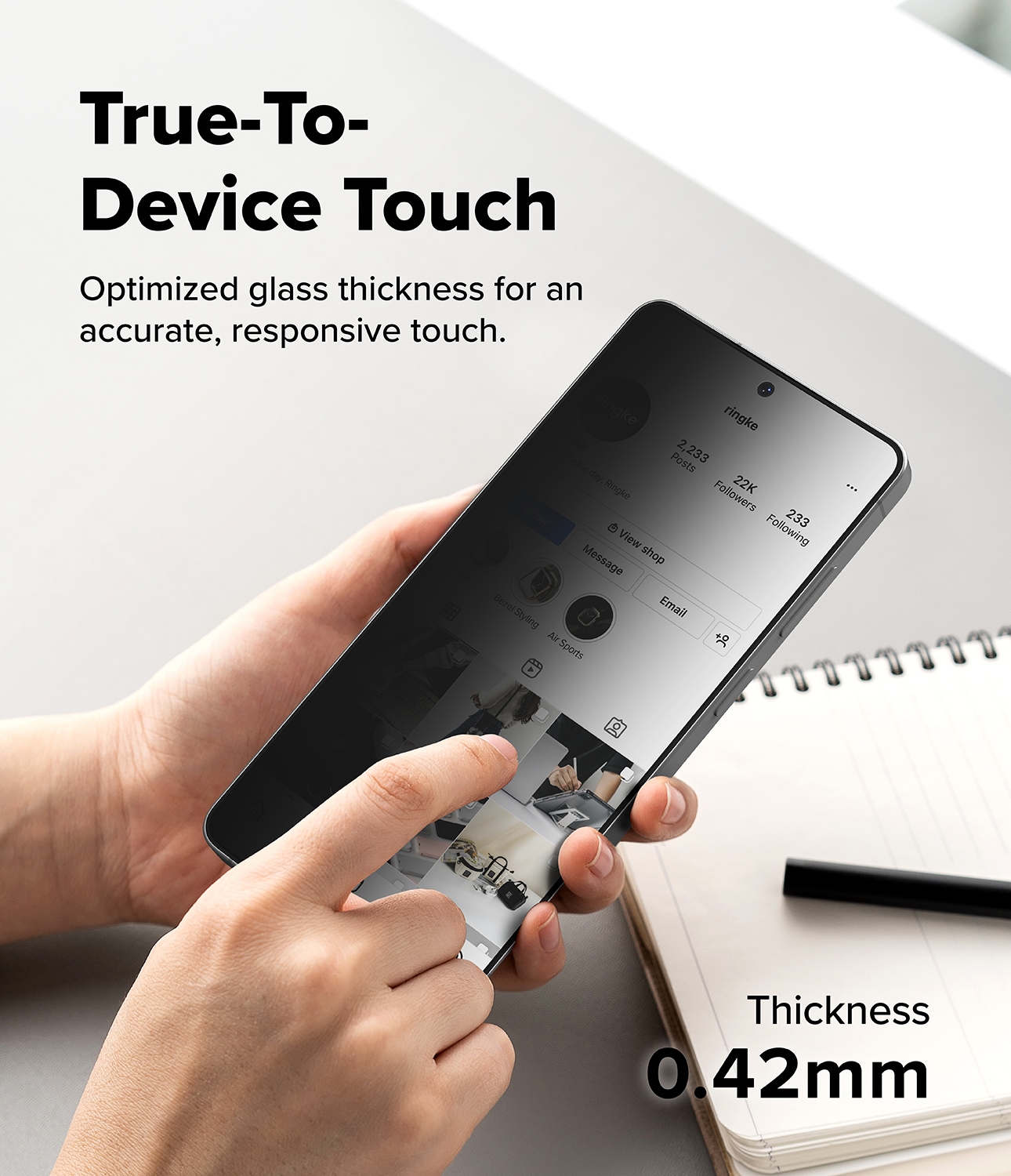 Hold skærmen på din Samsung Galaxy S26 Ultra i topform med dette 2-pak privacy-skærmbeskytter fra Ringke. Fremstillet i hærdet glas giver de ikke kun fantastisk klarhed og styrke, men har også afrundede kanter, så du undgår skarpe og ubehagelige hjørner. Takket være anti-spy-belægningen er skærmen knivskarp, når du kigger lige på - men allerede ved 28° vinkel bliver den uskarp for nysgerrige blikke. Perfekt til dig, der gerne vil holde skærmindholdet for dig selv!