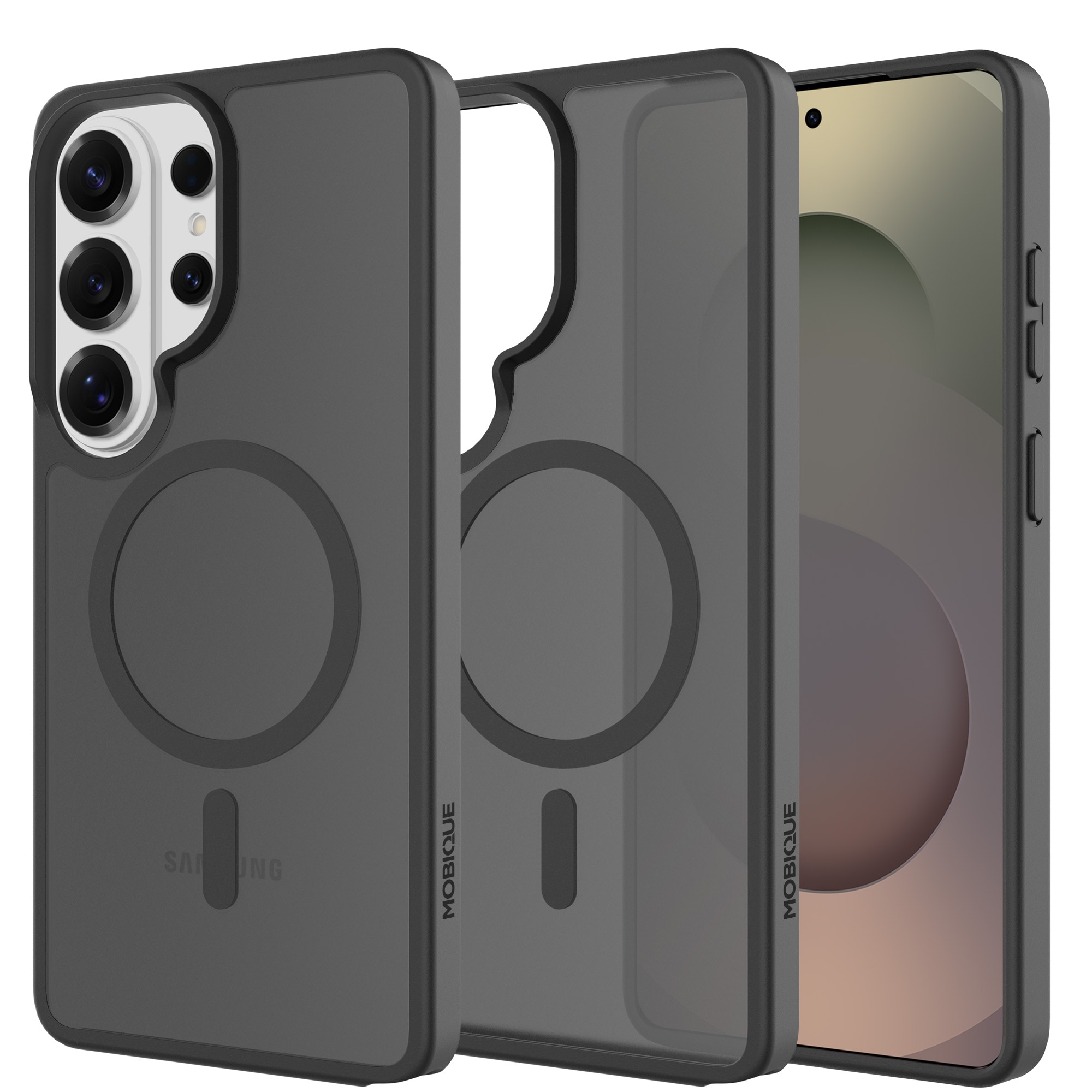 Giv din mobil et stilboost med dette hybride cover til Samsung Galaxy S26 Ultra fra Mobique! Med sin elegante frostede finish og smarte magnetiske ring på bagsiden er det her ikke bare beskyttelse - det er en opgradering. Den magnetiske ring gør det supernemt at bruge MagSafe-tilbehør som opladere og kortholdere – det er ren hverdagsmagi!