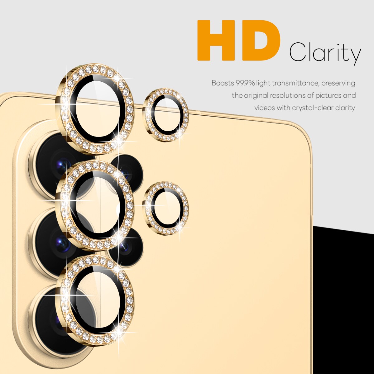 - Linsebeskytter i hærdet glas med glitrende rhinsten