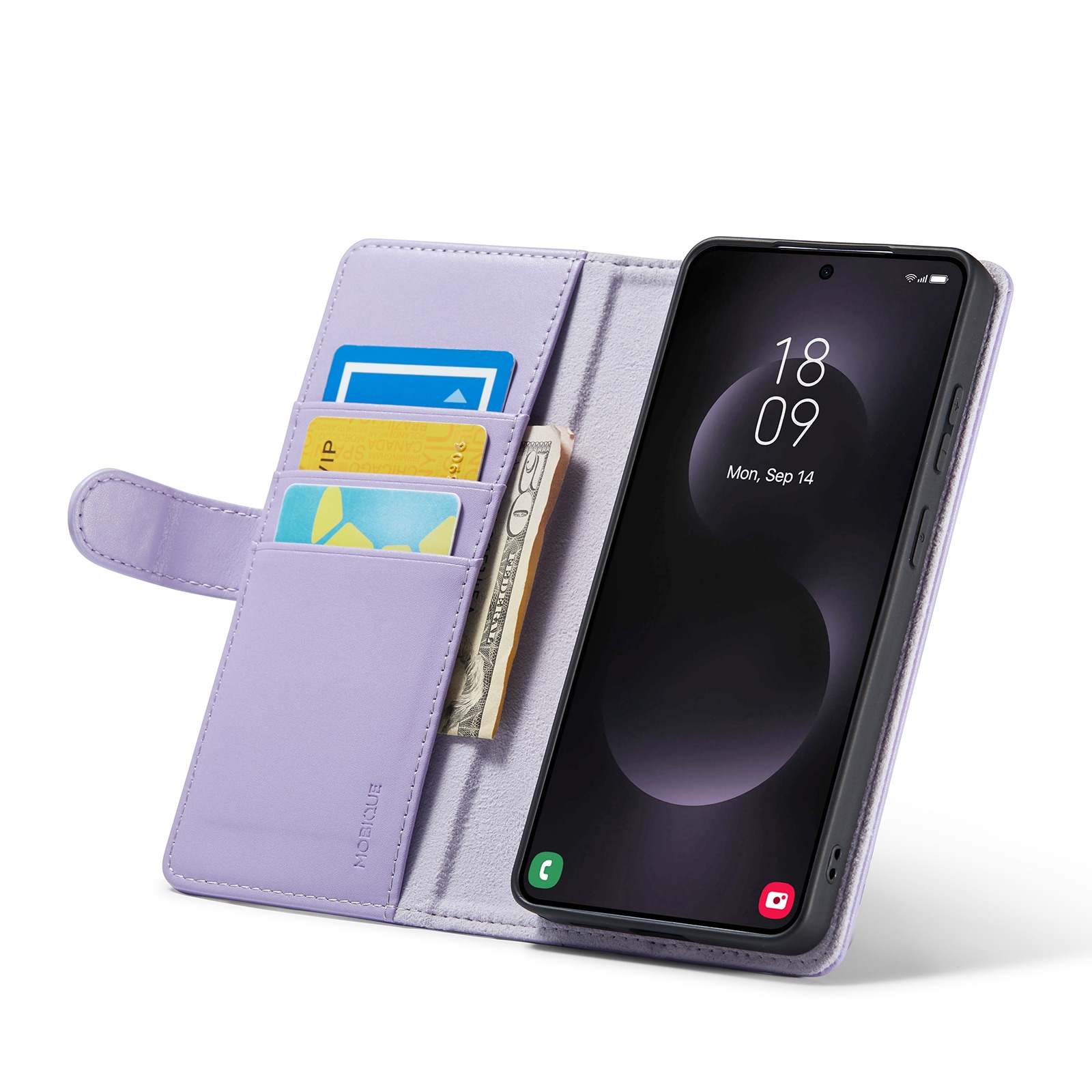 På udkig efter et lækkert læderetui til din Samsung Galaxy S26 Ultra? Så tjek dette fra Mobique! Det er ikke bare flot - det er også superpraktisk. Etuiet dækker hele mobilen, og indeni frontklappen finder du en rummelig pung. Der er plads til flere kort og lidt kontanter - perfekt, når du ikke gider slæbe rundt på en separat pung.