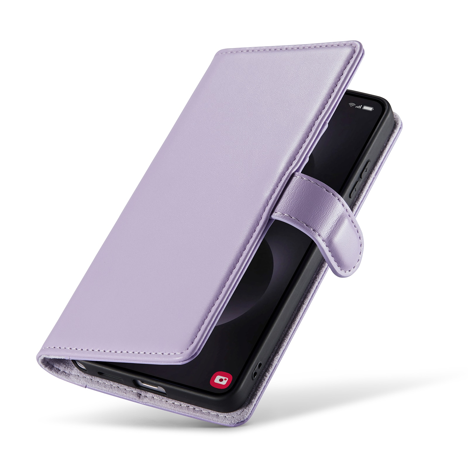 Din mobil sidder som støbt i det indbyggede, stødabsorberende TPU-cover. Klappen lukkes med en smart magnetlukning og beskytter både for- og bagside. Farvel til knuste skærme og ridser!