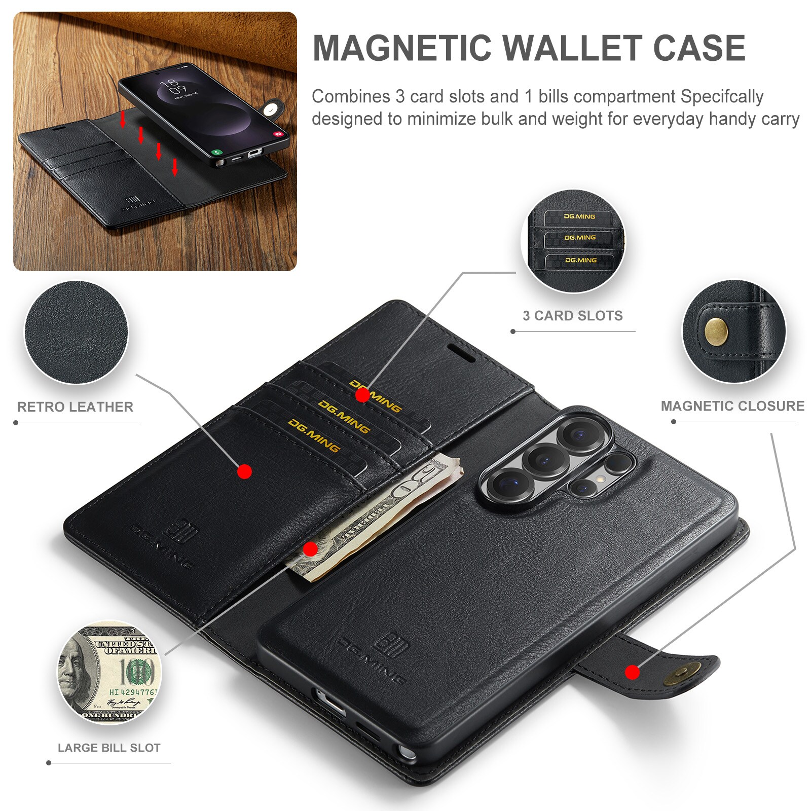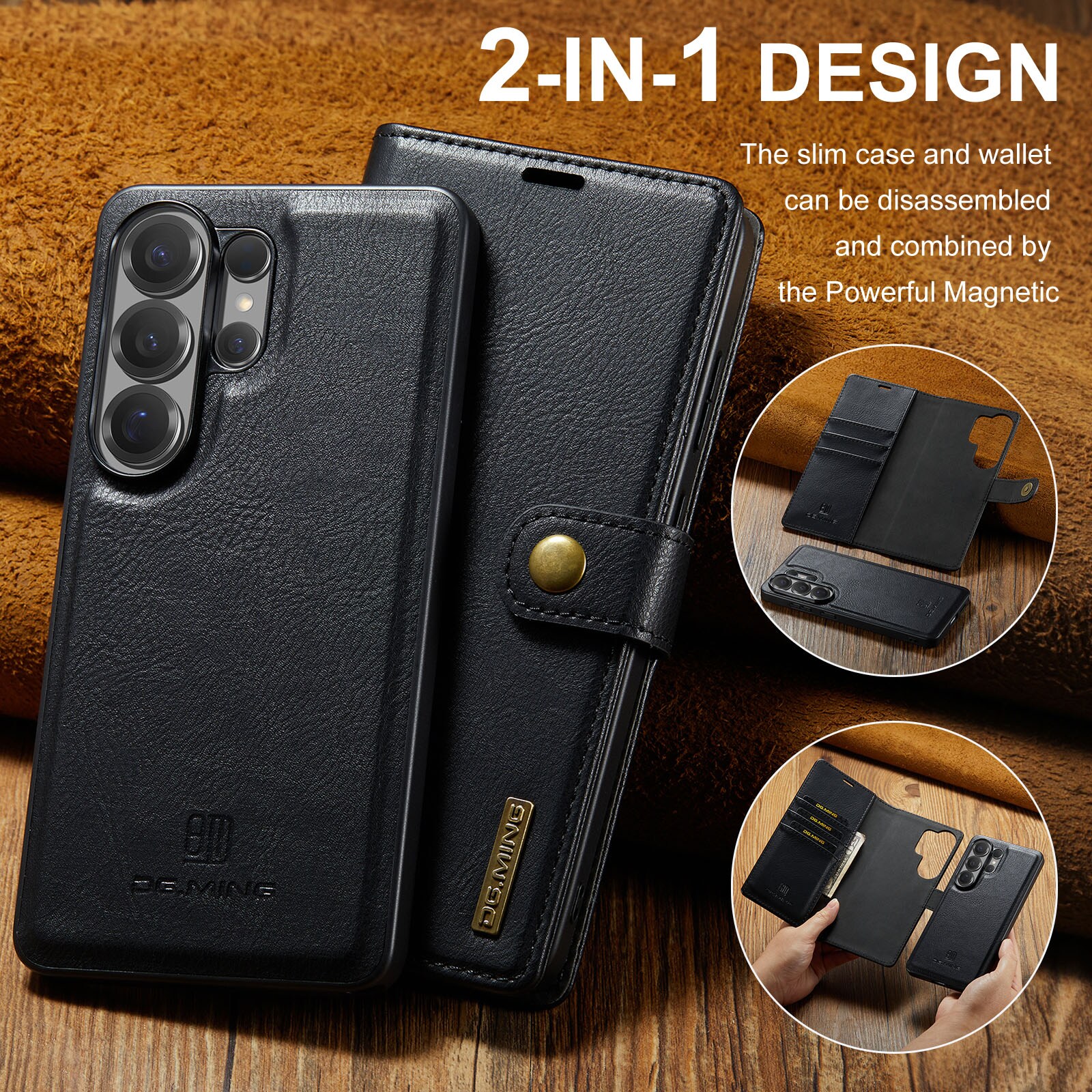Tjek vores smarte etui med aftageligt magnetcover til Samsung Galaxy S26 Ultra fra DG.MING. Dette etui kombinerer klassisk stil med praktisk funktion – og med det aftagelige cover kan du nemt tage mobilen ud, når du er hjemme eller på arbejde, uden at skulle slæbe hele etuiet med.