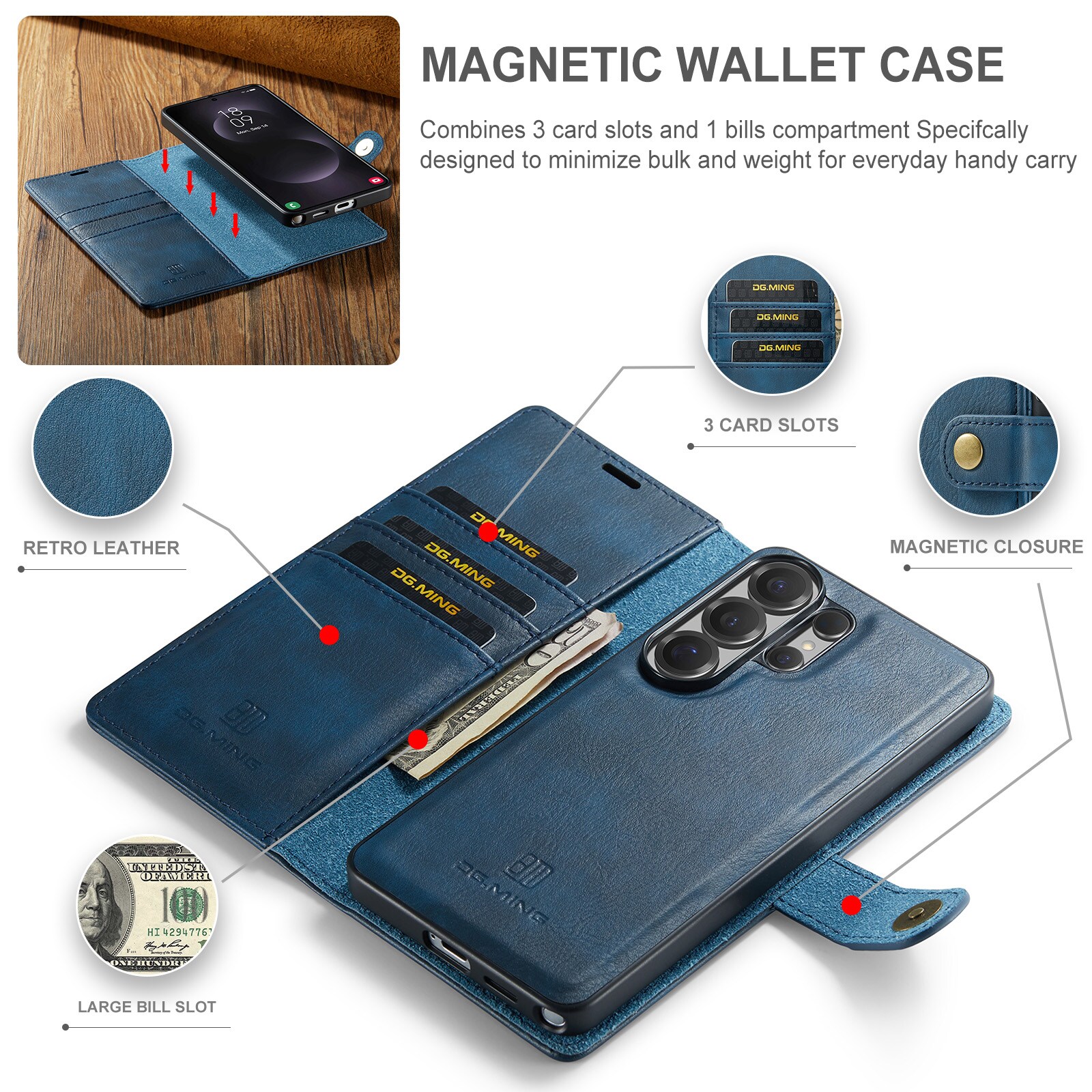 Tjek vores smarte etui med aftageligt magnetcover til Samsung Galaxy S26 Ultra fra DG.MING. Dette etui kombinerer klassisk stil med praktisk funktion – og med det aftagelige cover kan du nemt tage mobilen ud, når du er hjemme eller på arbejde, uden at skulle slæbe hele etuiet med.