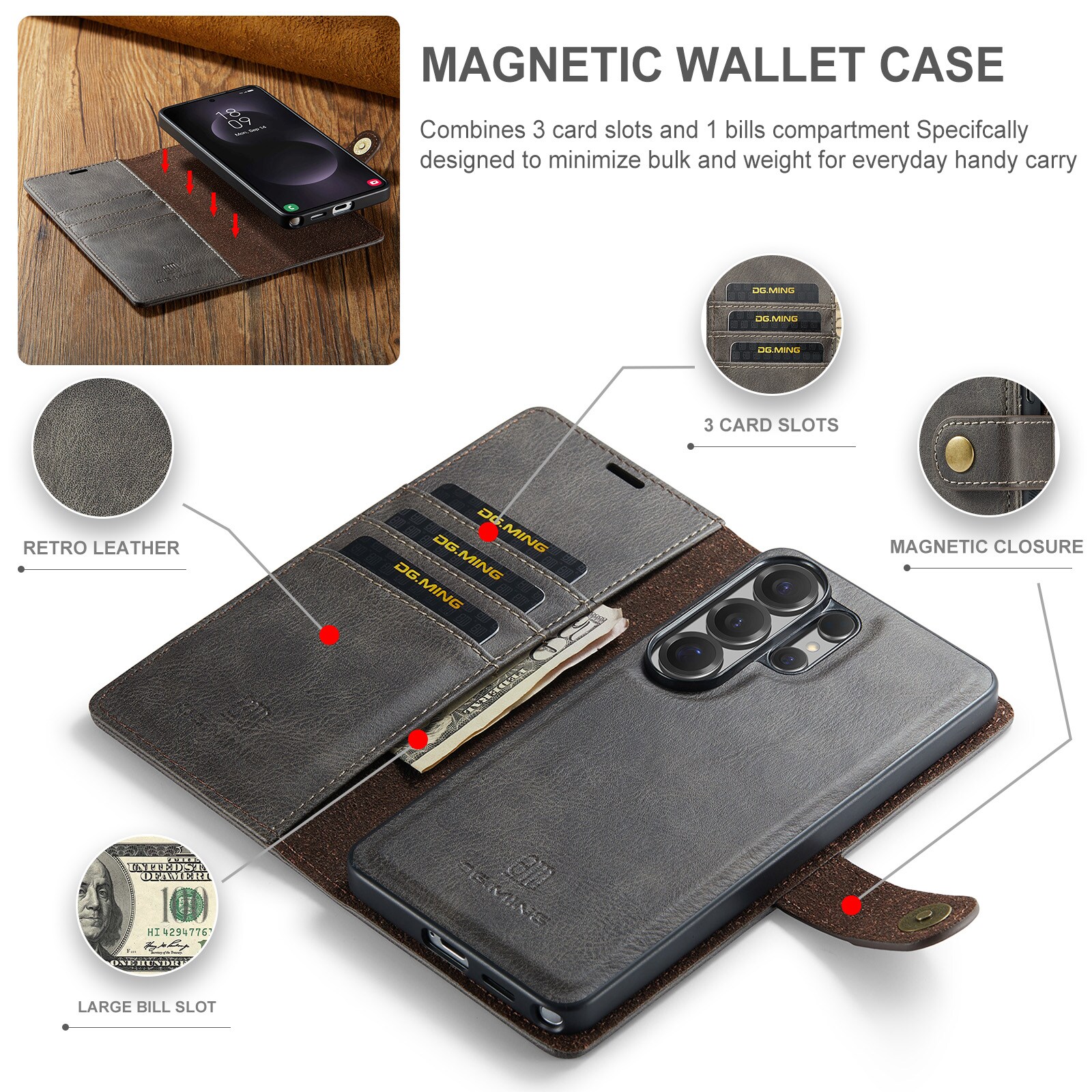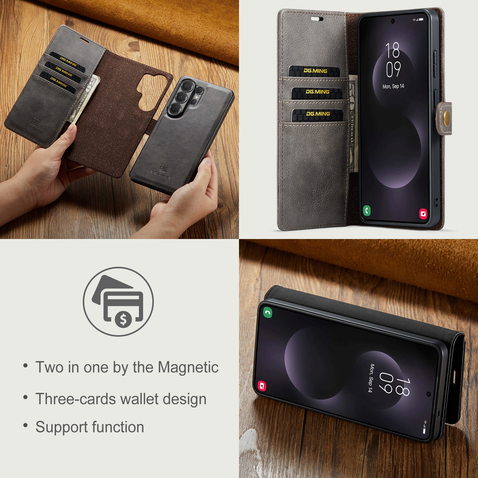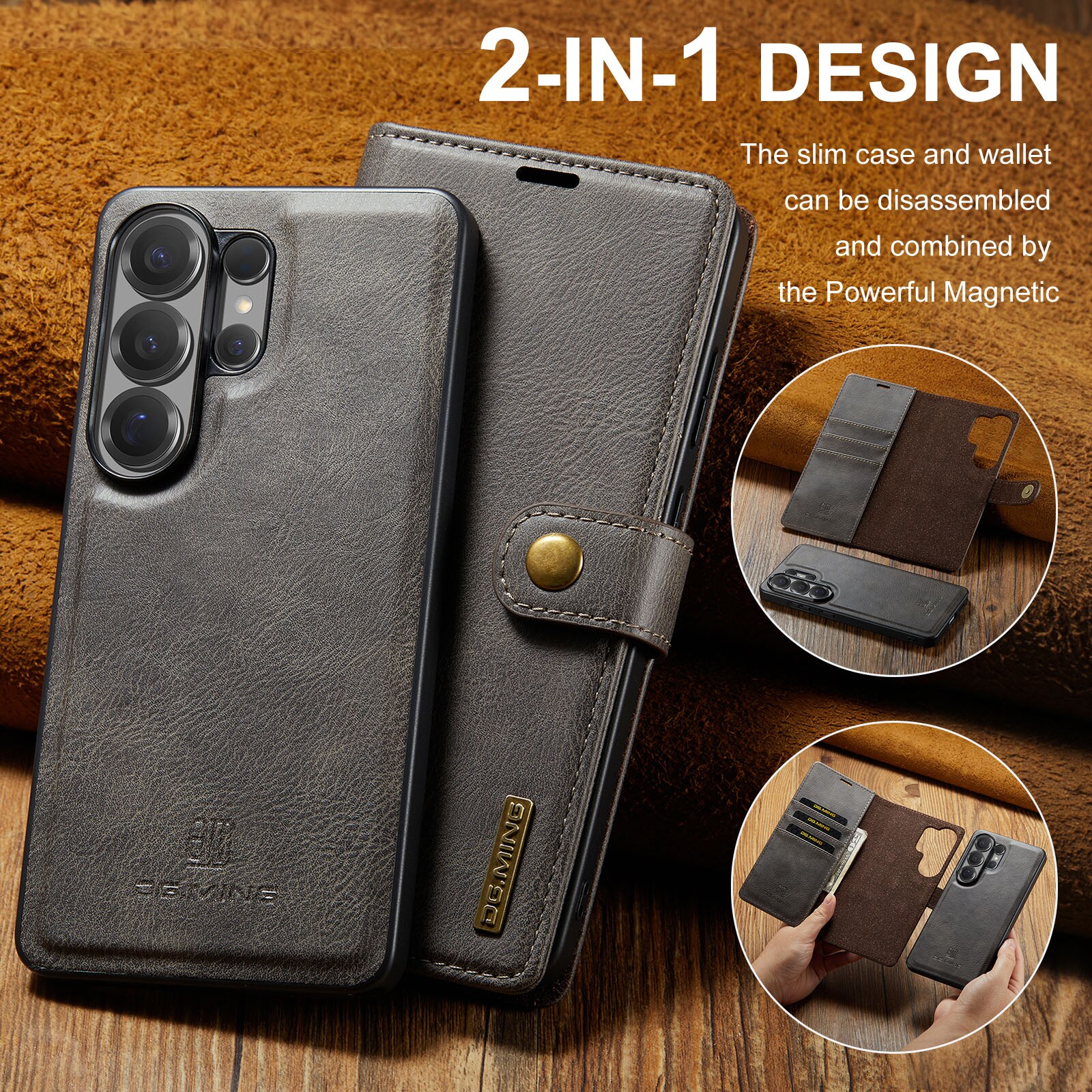 Tjek vores smarte etui med aftageligt magnetcover til Samsung Galaxy S26 Ultra fra DG.MING. Dette etui kombinerer klassisk stil med praktisk funktion – og med det aftagelige cover kan du nemt tage mobilen ud, når du er hjemme eller på arbejde, uden at skulle slæbe hele etuiet med.