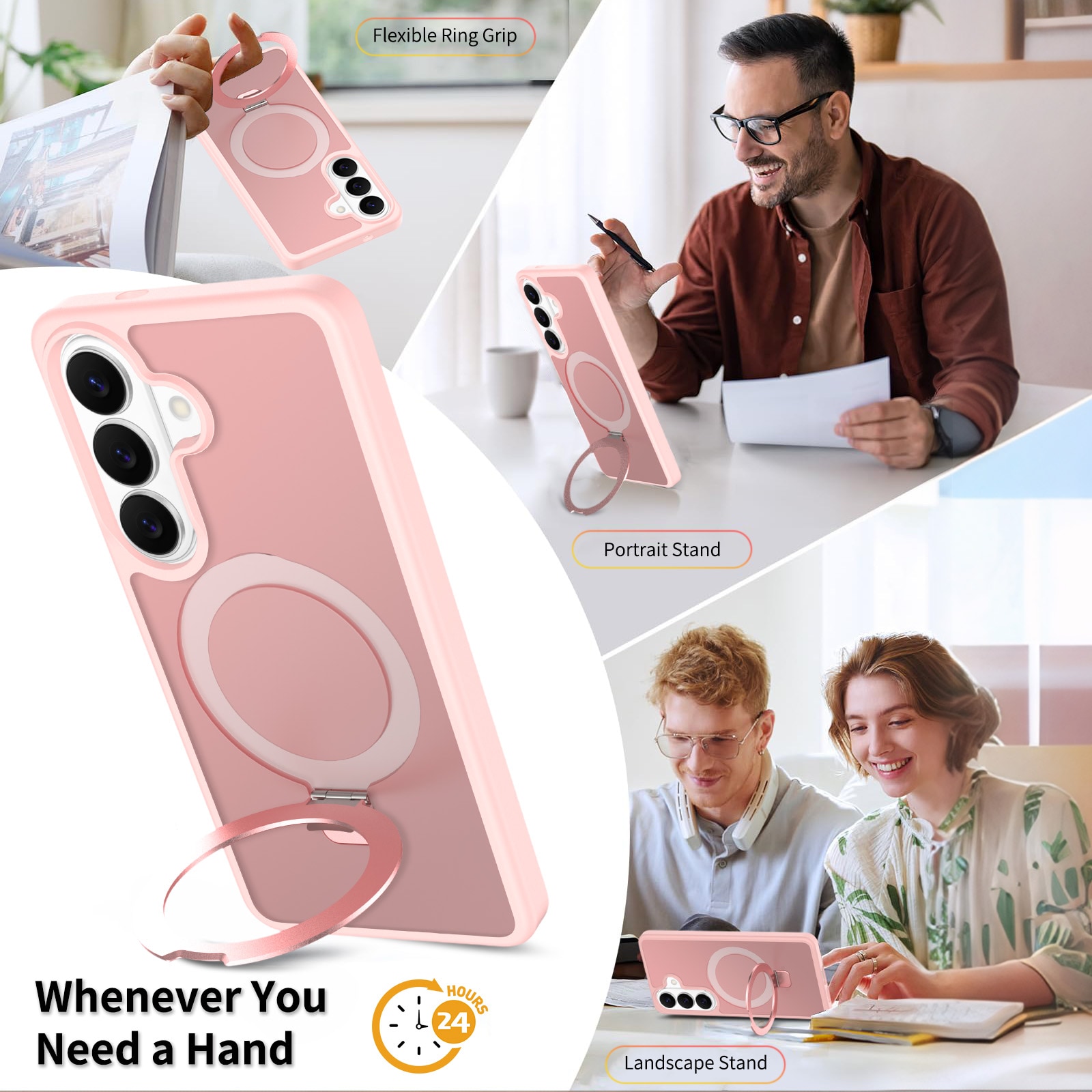 - Magnetringen kan foldes ud og bruges som praktisk mobilstativ