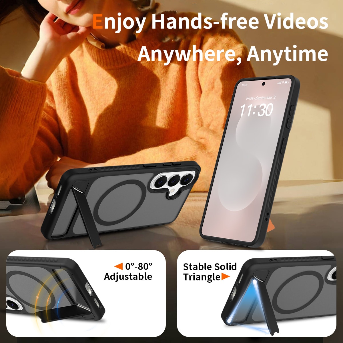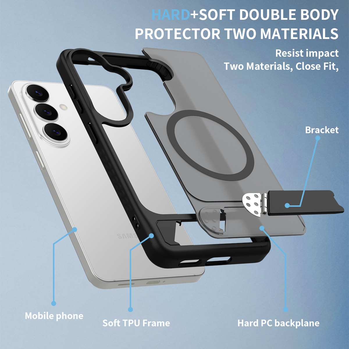 Det er tid til at give din Samsung Galaxy S26 et cover, der kan mere end bare se godt ud! Dette smarte hybridskal har et indbygget stativ, så du nemt kan se film, videoer eller game - helt handsfree! Perfekt til de dage, hvor du bare vil slappe af uden at holde mobilen.
