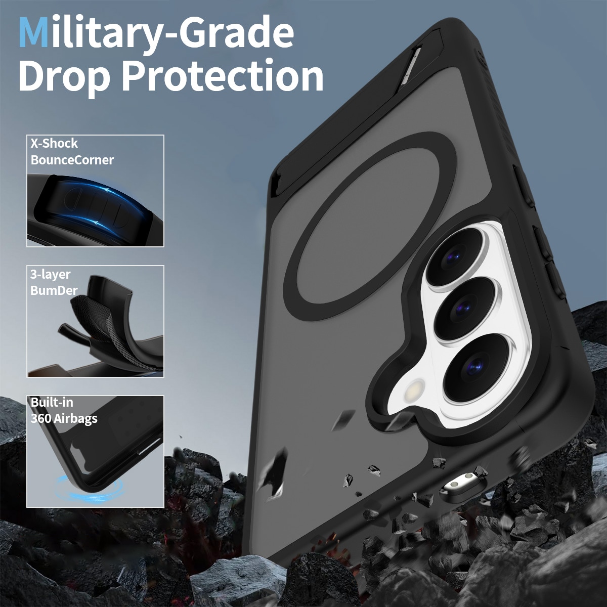 Kombinationen af slidstærk hårdplast og fleksibel TPU beskytter din mobil mod hverdagens stød og ridser. Og som prikken over i’et - en magnetisk ring på bagsiden, der er kompatibel med MagSafe-tilbehør som trådløse opladere og kortholdere. Praktisk, smart og superflot!