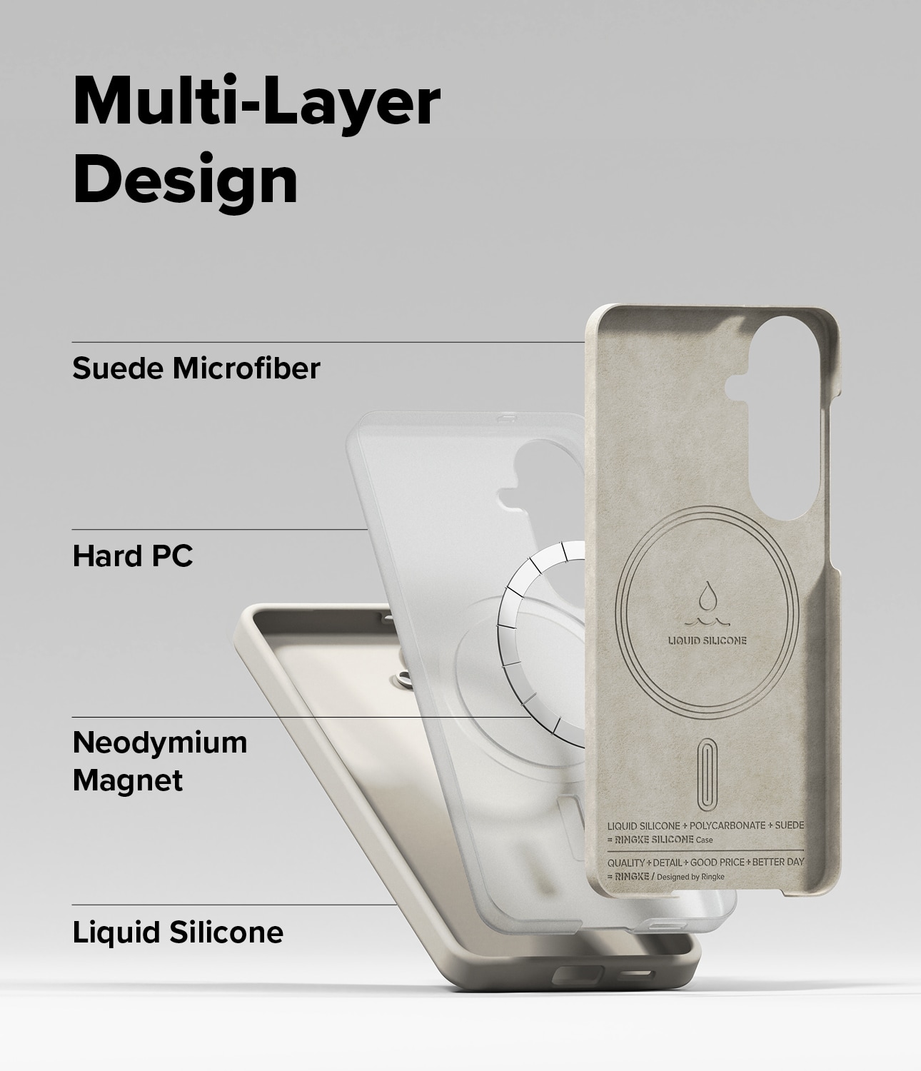 Mød det superstilfulde silikonecover fra Ringke til din Samsung Galaxy S26 - din mobil vil elske dig for det! Med indbygget MagSafe-funktionalitet kan du nemt klikke dine MagSafe-tilbehør på eller smide mobilen på opladeren uden at fjerne coveret.
