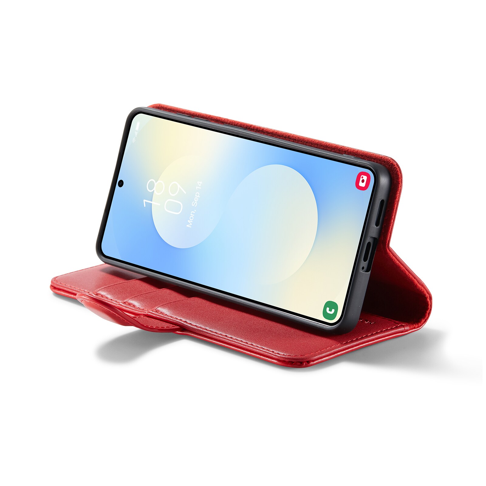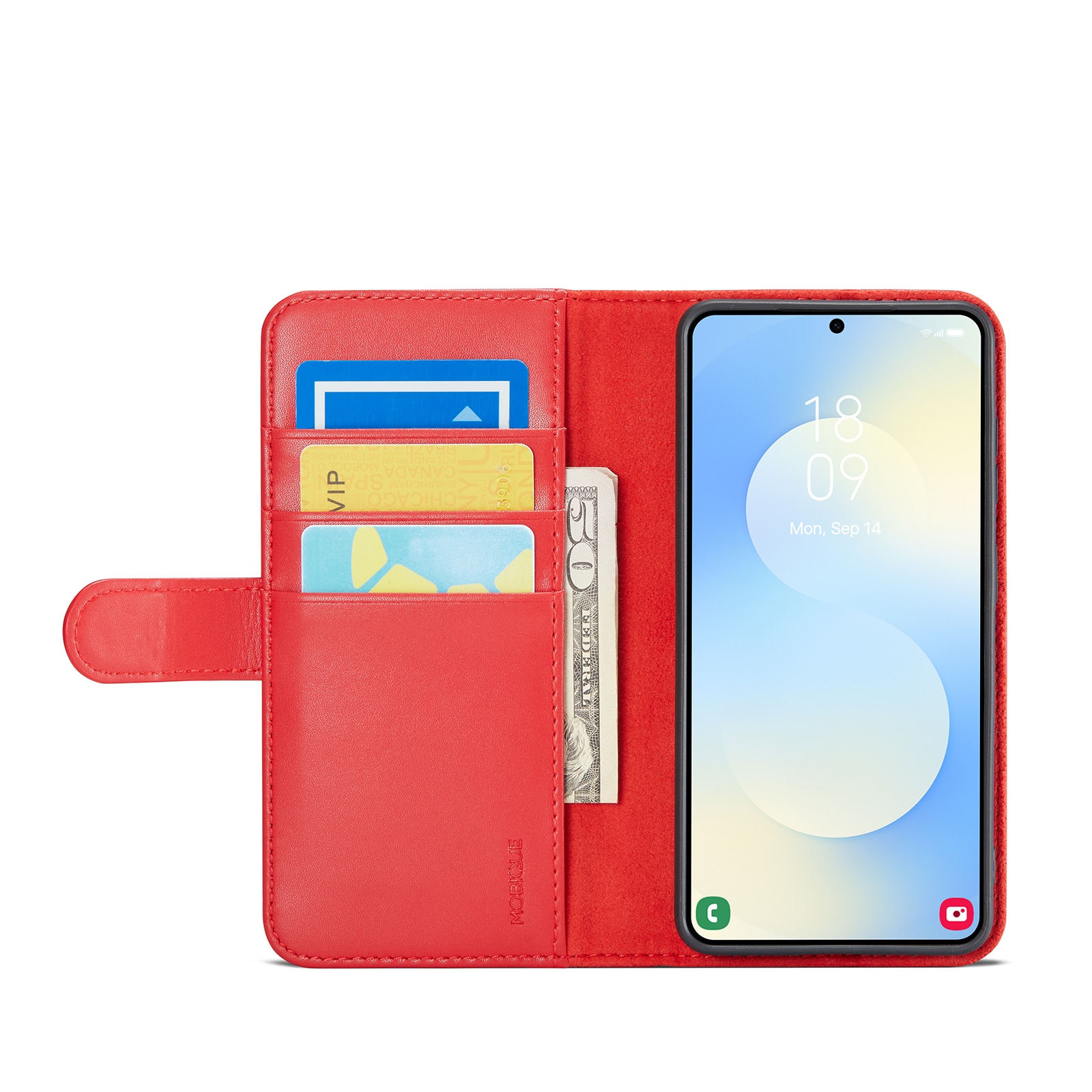 Din mobil sidder som støbt i det indbyggede, stødabsorberende TPU-cover. Klappen lukkes med en smart magnetlukning og beskytter både for- og bagside. Farvel til knuste skærme og ridser!