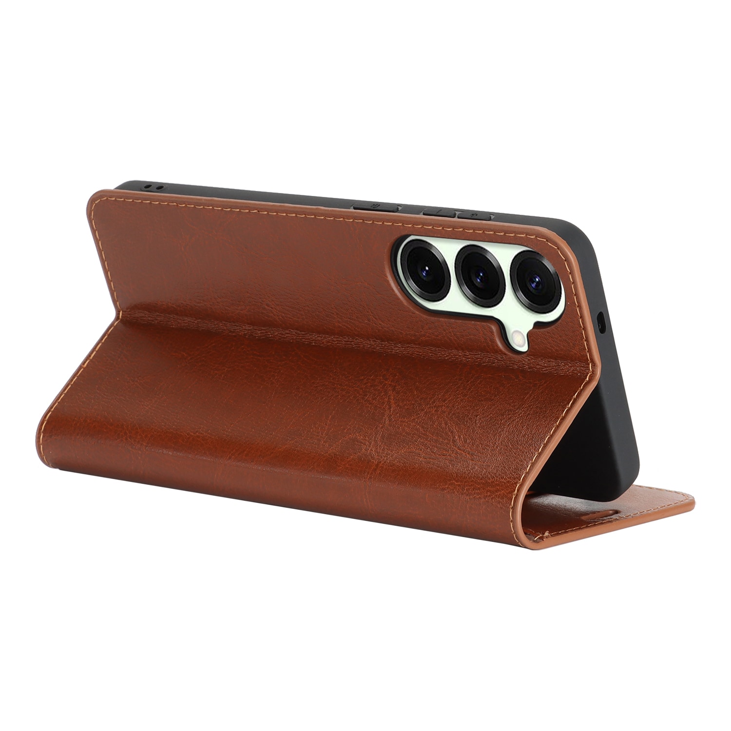 Gør din Samsung Galaxy S26 endnu flottere med et praktisk mobiletui i ægte læder! Det er slankt men super smart, med plads til tre kort og en seddel eller to - så du kan lade pungen blive hjemme. Din mobil klikker du nemt i det fleksible, indbyggede cover, som holder den sikkert på plads.