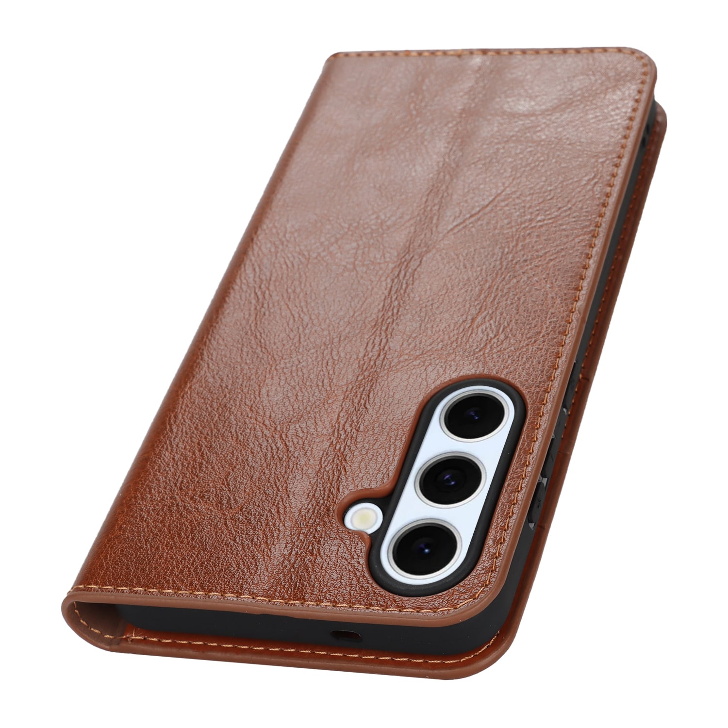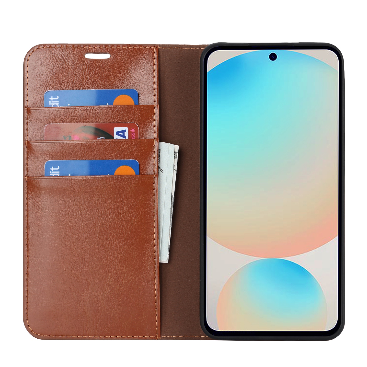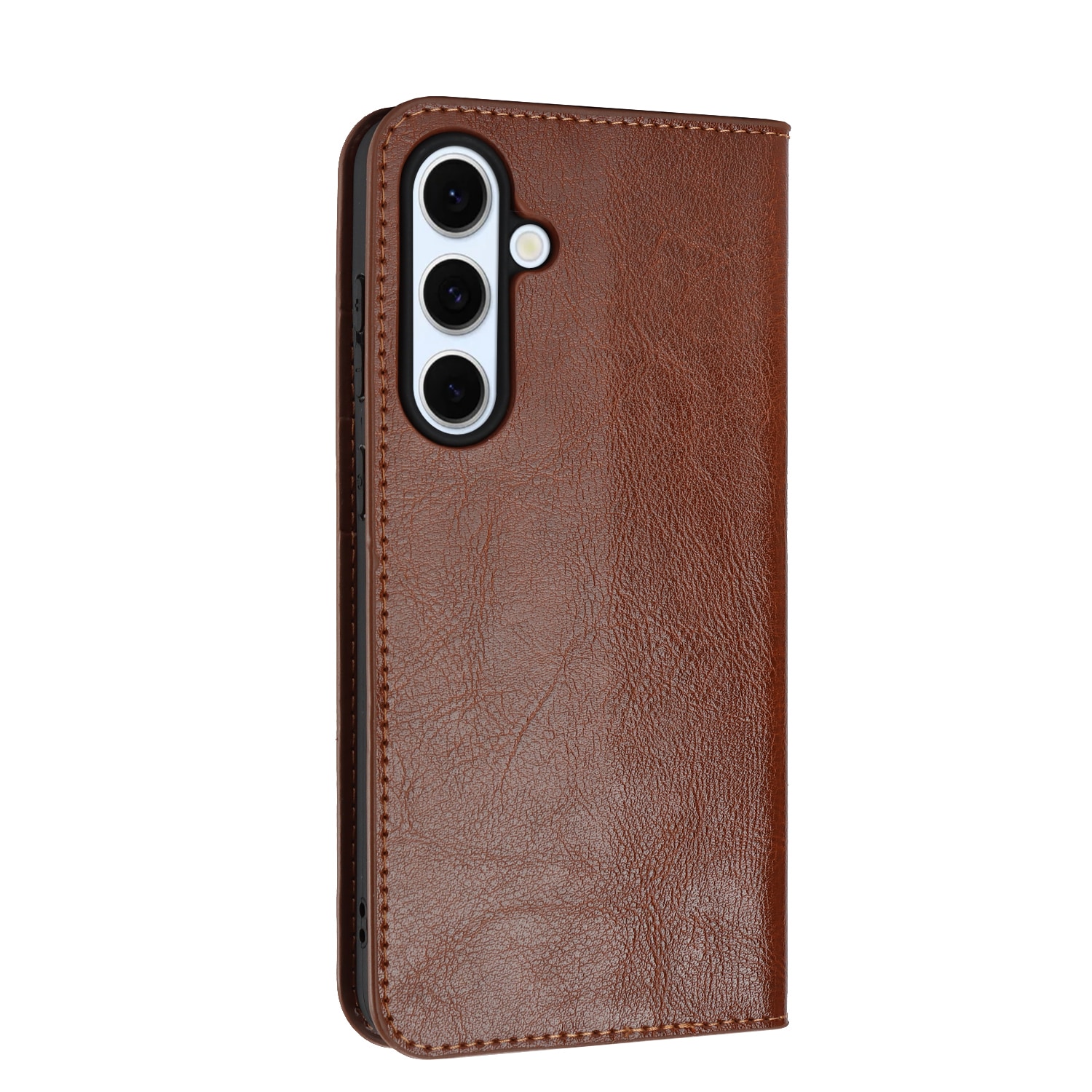Gør din Samsung Galaxy S25 FE endnu flottere med et praktisk mobiletui i ægte læder! Det er slankt men super smart, med plads til tre kort og en seddel eller to - så du kan lade pungen blive hjemme. Din mobil klikker du nemt i det fleksible, indbyggede cover, som holder den sikkert på plads.
