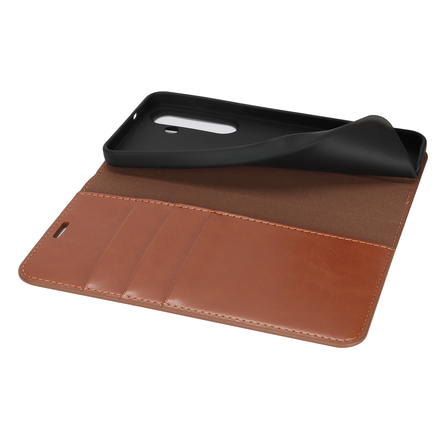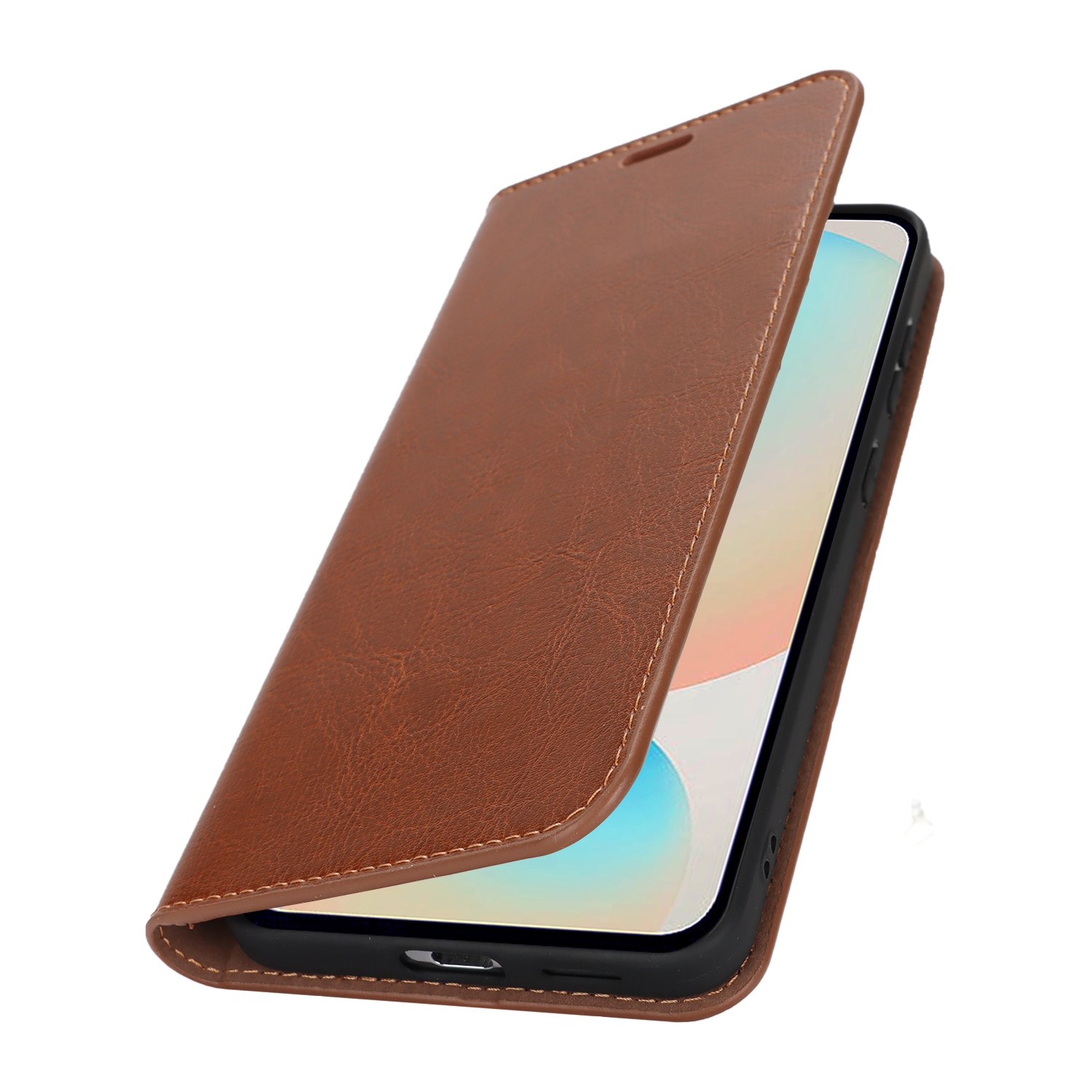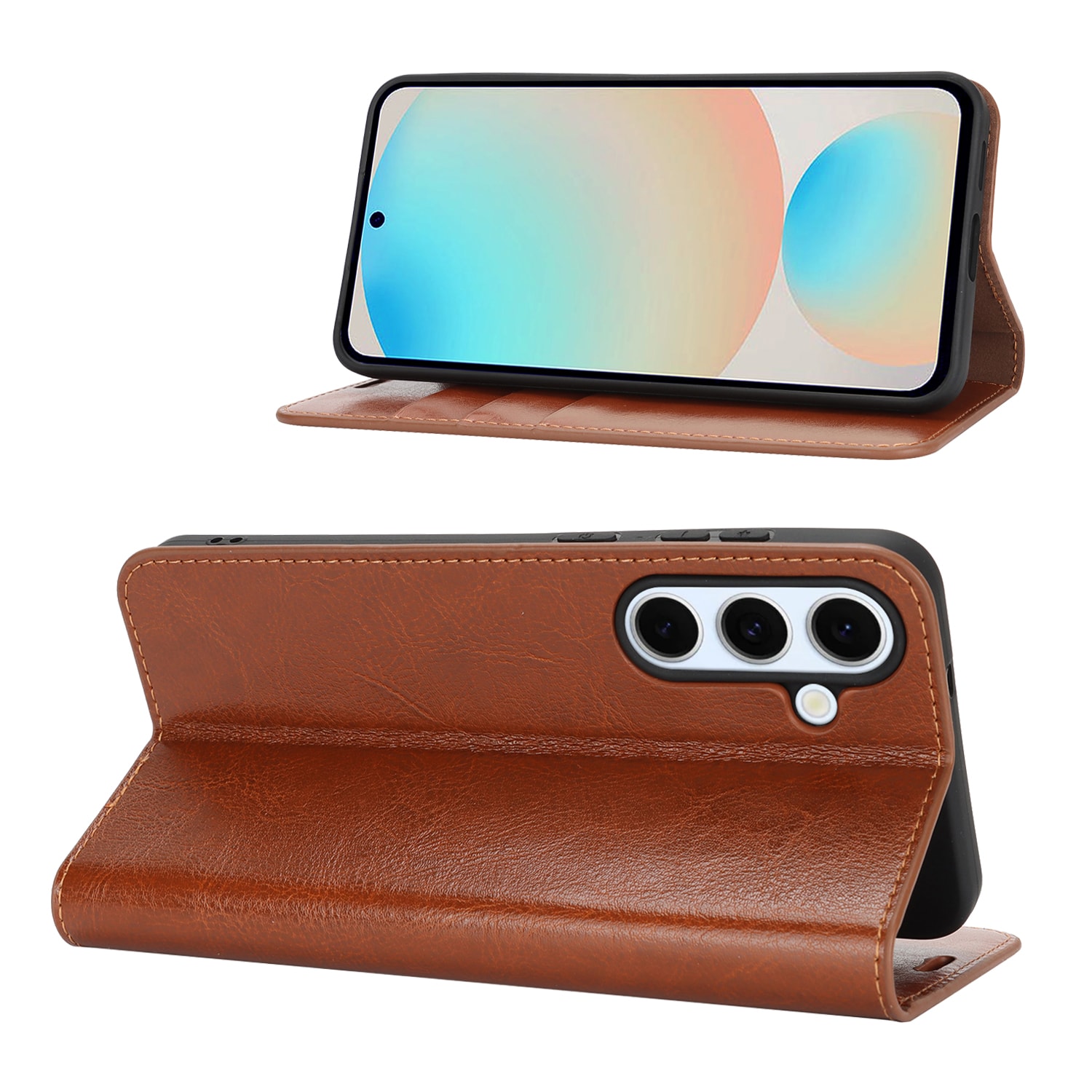 Gør din Samsung Galaxy S25 FE endnu flottere med et praktisk mobiletui i ægte læder! Det er slankt men super smart, med plads til tre kort og en seddel eller to - så du kan lade pungen blive hjemme. Din mobil klikker du nemt i det fleksible, indbyggede cover, som holder den sikkert på plads.