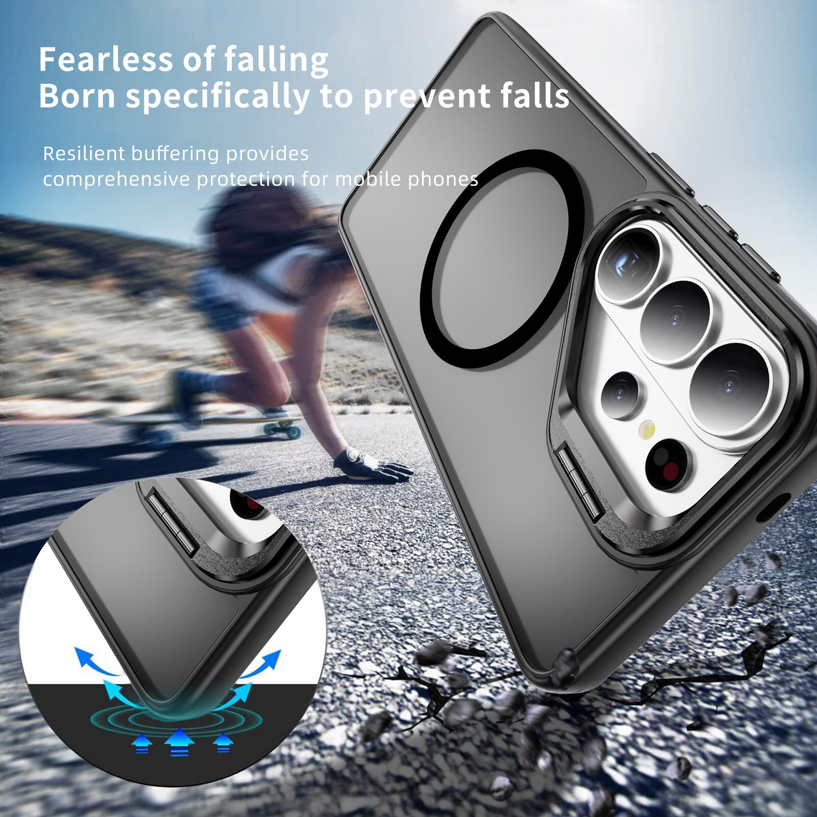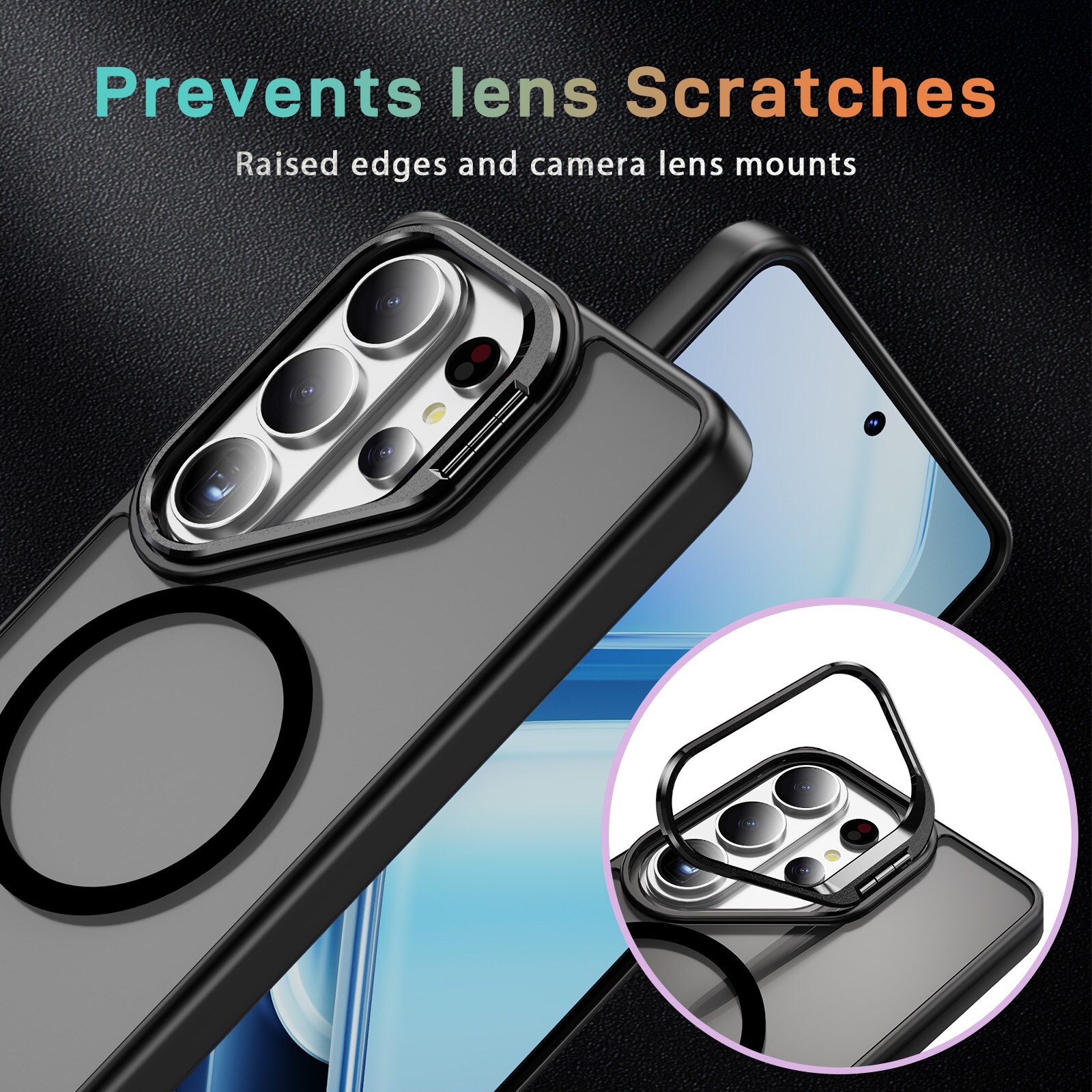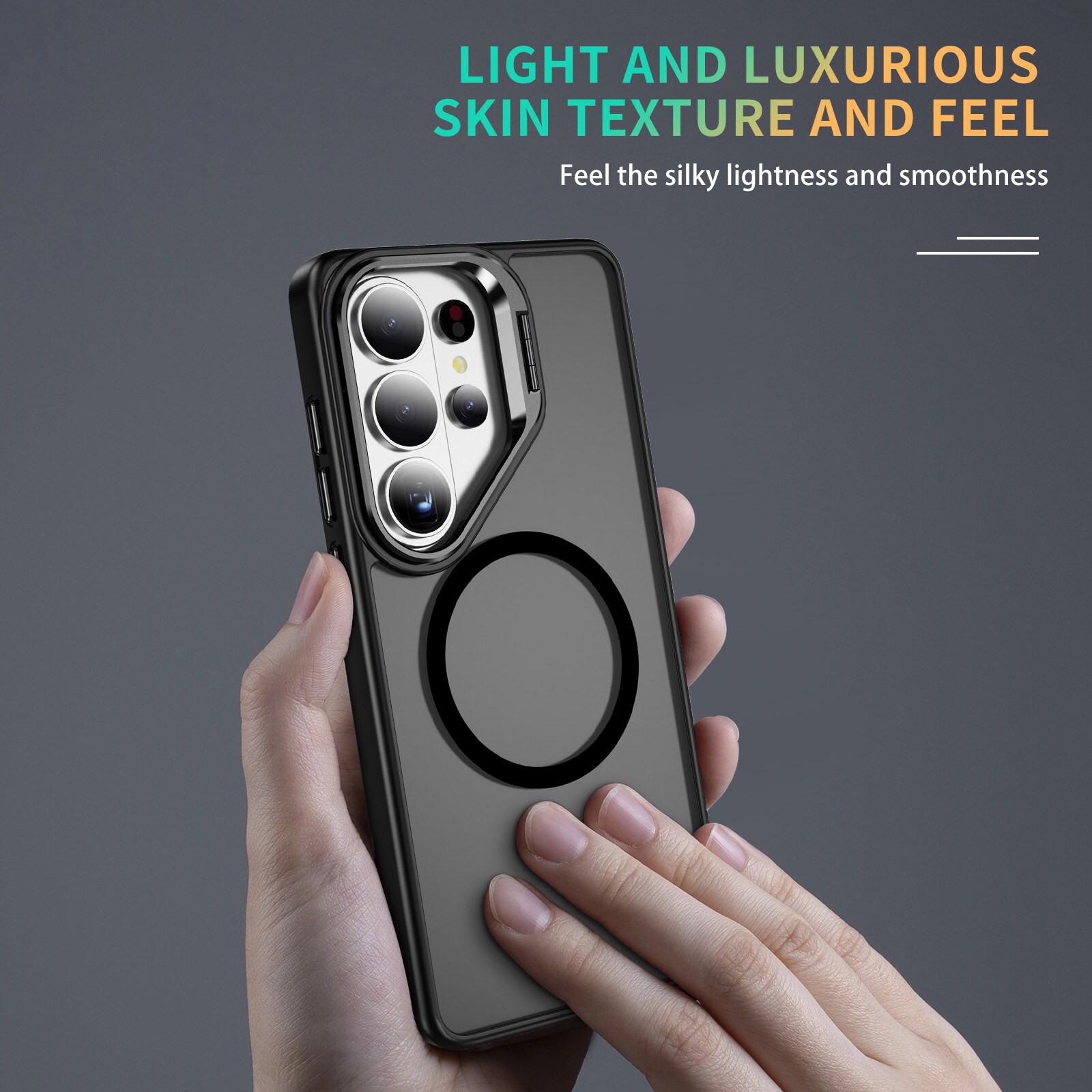 Se lige her - et hybridcover til din Samsung Galaxy S26 Ultra, der ikke bare ser godt ud, men også er superpraktisk! Dette todelte vidunder kombinerer en TPU-kerne med et hårdt plastskjold, hvilket giver dig den ultimative beskyttelsesboble mod både små og store hverdagshændelser. Men vent, det bliver endnu bedre! Coveret er udstyret med en metalramme rundt om kameraet for at beskytte dine linser mod stød - samtidig giver det også din mobil et luksuriøst udtryk. Og rammen? Den kan klappes ud og forvandles til et praktisk kickstand - perfekt til lange serieaftener.