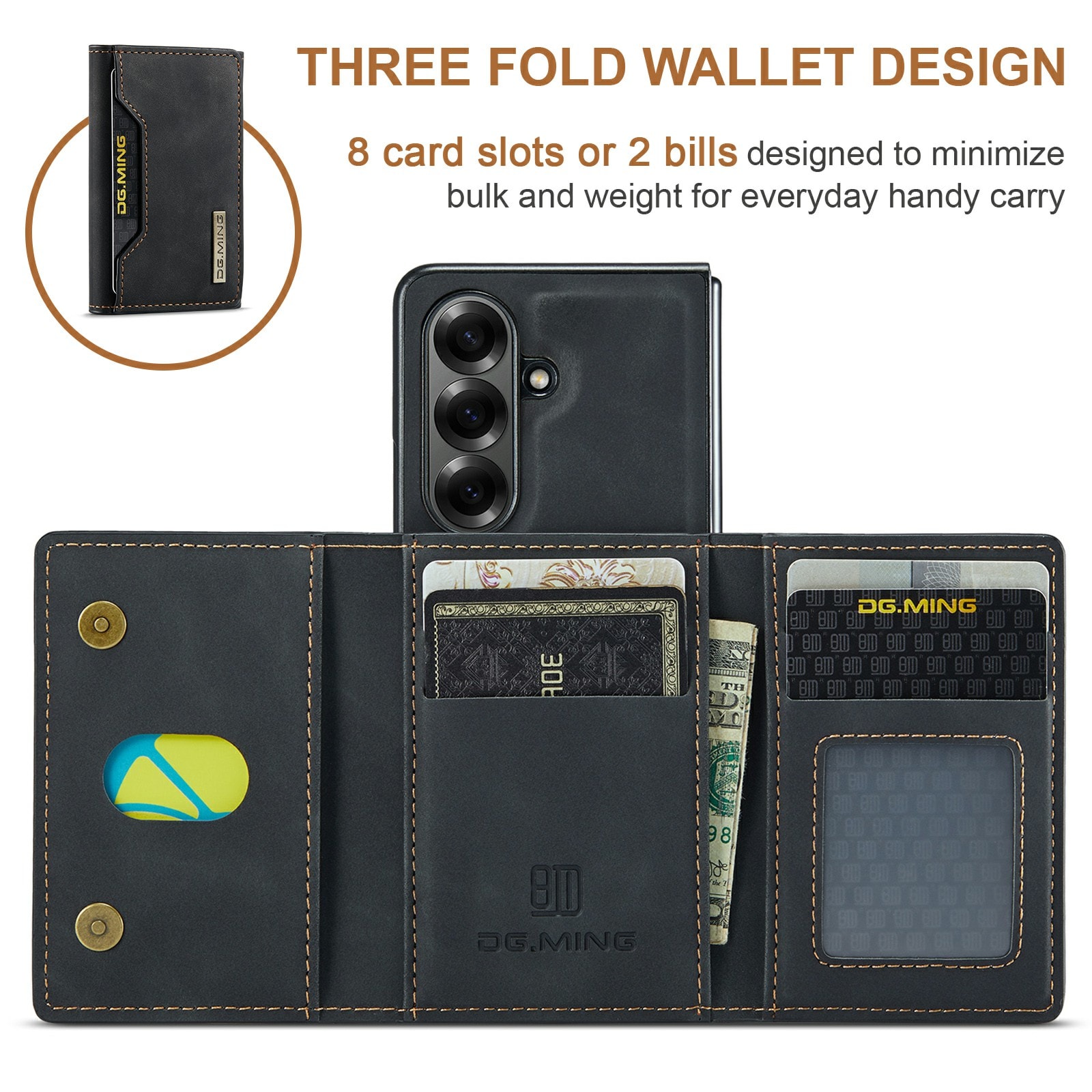 Gør din Samsung Galaxy Z Fold 7 både praktisk og stilfuld med dette smarte lædercover og den matchende magnetiske pung! Du kan nemt klikke pungen af, når du ikke har brug for den - og når den sidder på, kan den foldes ud som et stativ til dine serie-maraton eller videoopkald.