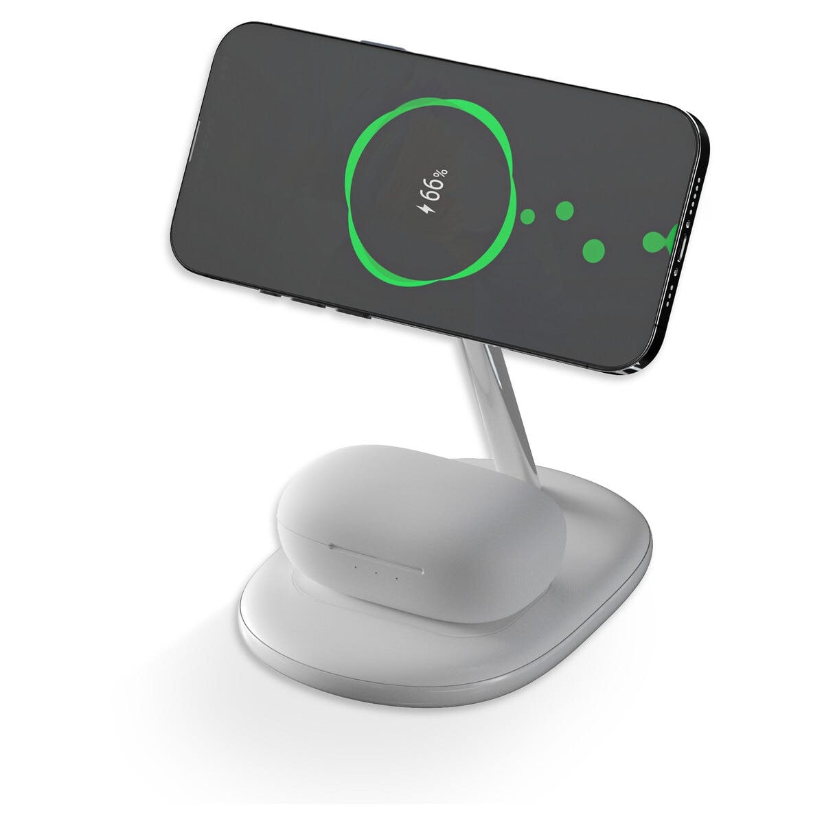 Gør opladningen nemmere og mere organiseret med en magnetisk trådløs Qi2 ladestation 2-i-1 som lader dig oplade mobilen og dine høretelefoner samtidig. Den smarte magnetiske konstruktion holder telefonen stabilt på plads mens Qi2-teknologien giver hurtig og effektiv opladning med op til 15 W effekt. Perfekt når du vil have mobilen i den rette vinkel til video, opkald eller arbejde samtidig med at den oplades. Den separate ladeplade gør det nemt at give AirPods eller andre trådløse TWS-høretelefoner ny energi uden kabelrod. Det stilrene og kompakte design gør ladestationen til et praktisk tilbehør på skrivebordet eller natbordet.